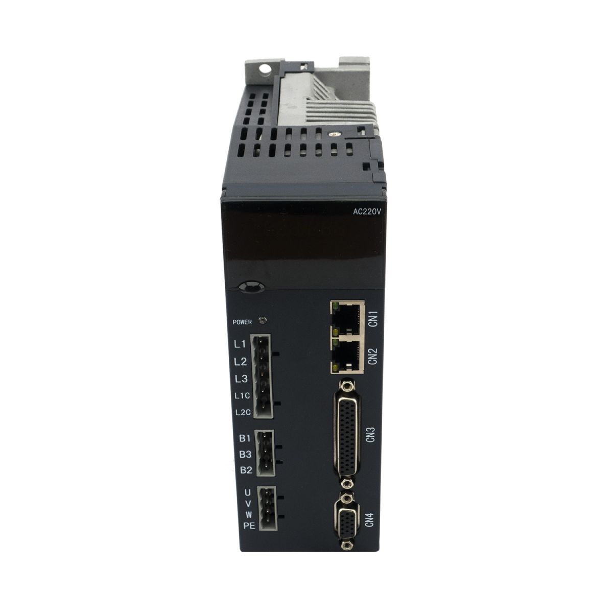 Серводрайвер серии ArtNC2 предназначен для работы с серводвигателем мощностью до 0,4 кВт с инкрементальным энкодером 2500 имп/об (10000 отсчетов на оборот). Может работать с внешним контроллером в режимах задания позиции, скорости, момента или автономно в соответствии с программой, написанной пользователем. Запитывается драйвер от 1 или 3 фаз 220В. Для настройки привода на передней панели имеется 7 сегментный дисплей с элементами управления. Для управления доступны следующие интерфейсы: импульсный, аналоговый входы, шины CANOPEN, RS485 с протоколом MODBUS RTU. Драйвер имеет выход эмулятора энкодера с настраиваемой электронной редукцией. У драйвера имеется 2 аналоговых и 8 дискретных входов, 6 дискретных выходов, функционал которых можно задать настройками. Драйвер поддерживает: