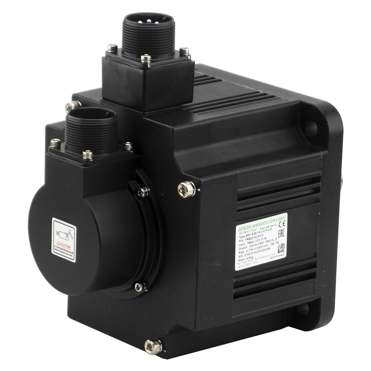Серводвигатель EM1-A-M-1K-2-0-F-0-D относится к серии сервоприводов E1. Основные технические характеристики двигателя приведенные в таблице ниже. Двигатель имеет встроенный 23 битный абсолютный энкодер. Степень защиты - IP65 (вал IP40). Вал двигателя под шпонку, с сальником, диаметром 24мм.
