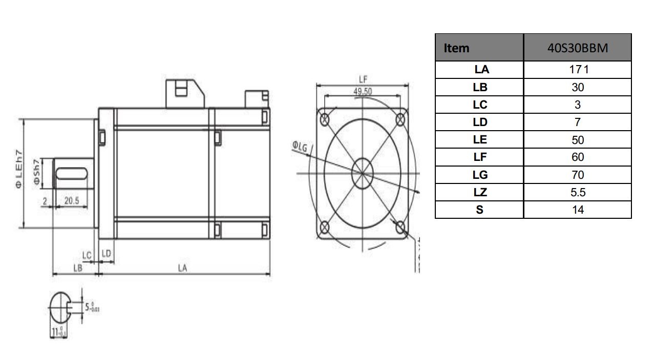 Серводвигатель ArtNC2-0W40S30BBM относится к серии сервоприводов ArtNC2. Двигатель имеет встроенный инкрементальный энкодер 2500 имп/об и стояночный электромагнитный тормоз. Степень защиты - IP64. Вал двигателя со шпонкой, диаметром 14мм. Основные технические характеристики двигателя приведенные в таблице ниже.