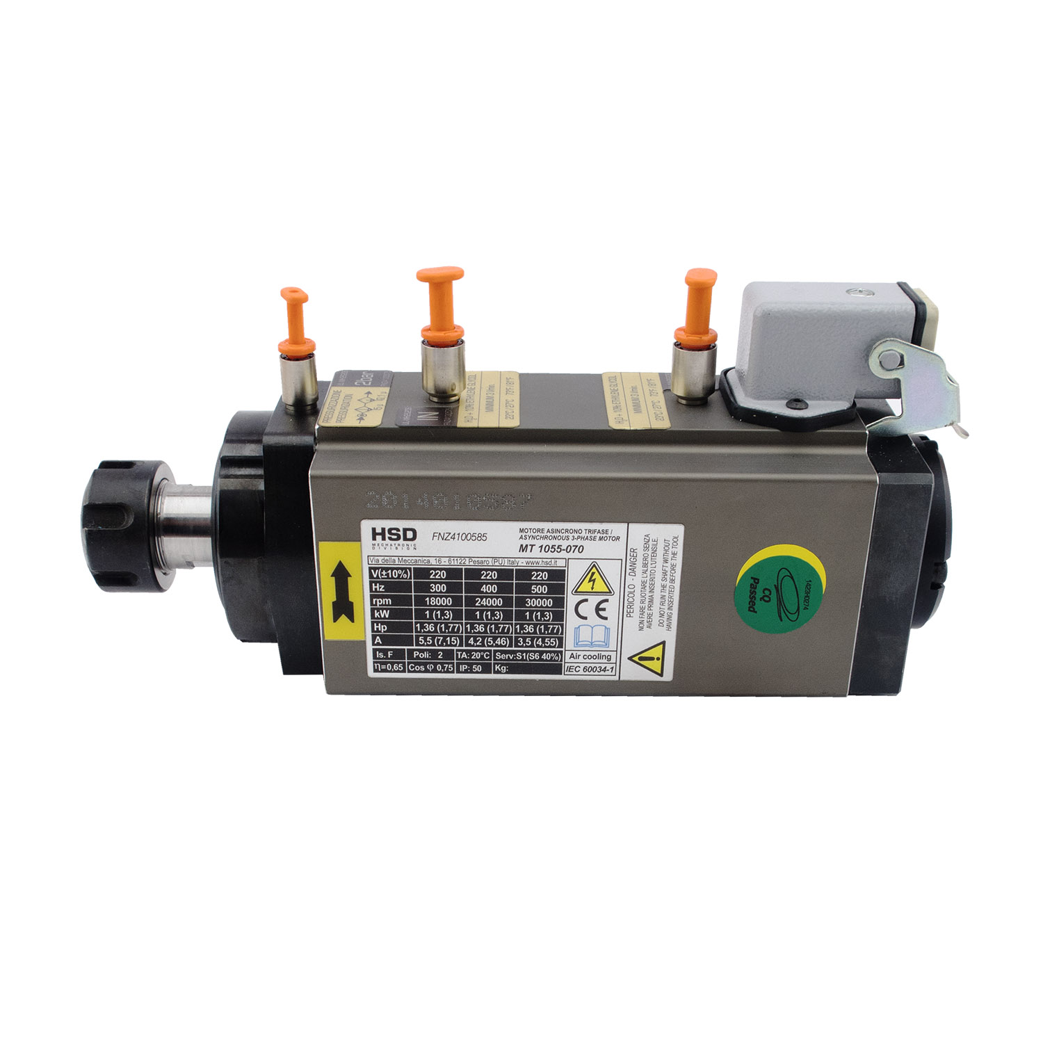 Благодаря своим конструктивным особенностям электрошпиндели могут выдерживать радиальные, осевые и смешанные нагрузки. Они полностью защищены от попадания таких загрязнителей как опилки и стружка обрабатываемых материалов. В случаях если при производственном процессе образуются ультратонкие частицы пыли (эпоксидные материалы, углерод и т.п.) или используются жидкие смазочные материалы в виде струй и спреев необходимо обязательно использовать электрошпиндели с пневматическими уплотнениями.