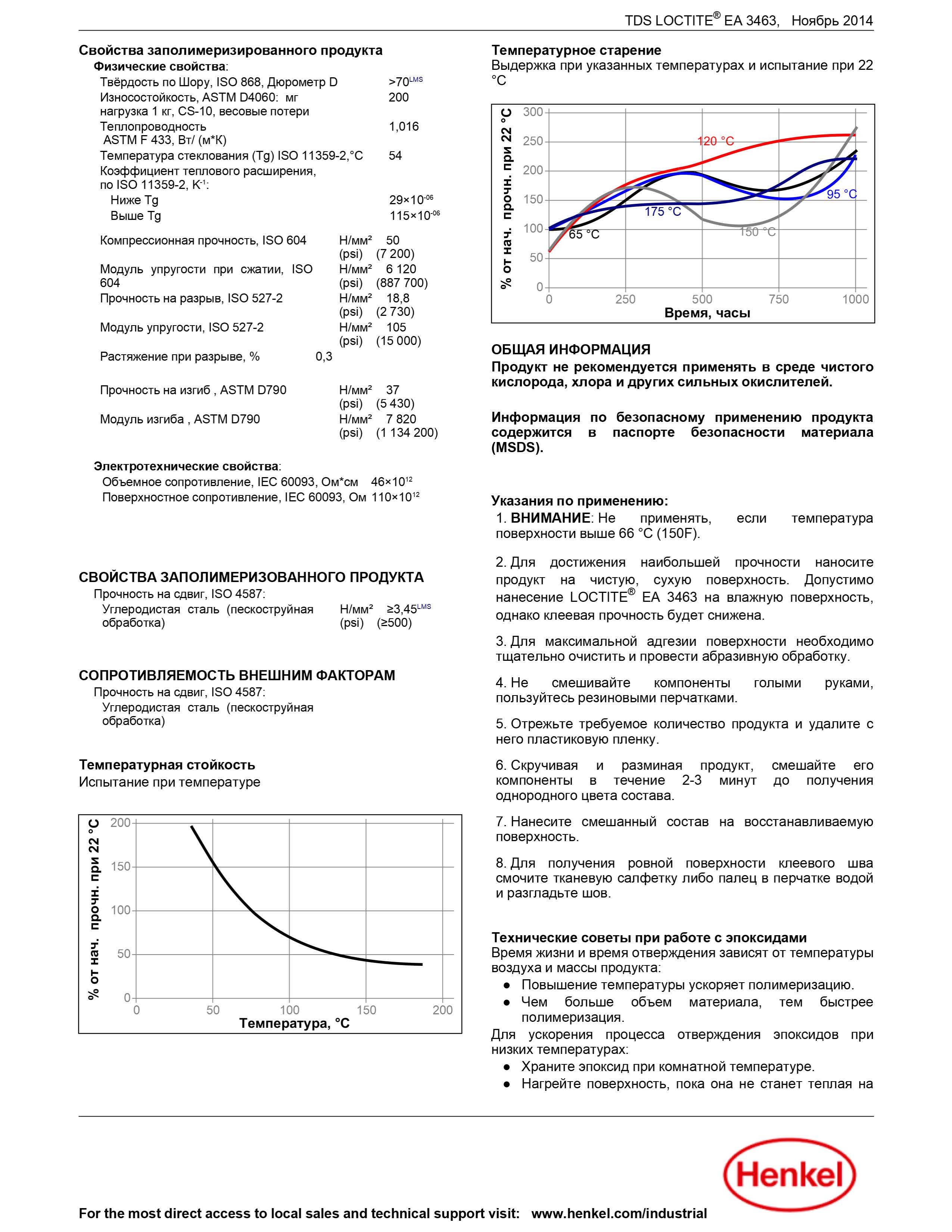 Клей Loctite EA 3463 имеет высокую компрессионную прочность и обладает хорошей адгезией к большинству поверхностей. Применяется в температурном режиме от -30 °C до 120 °C.