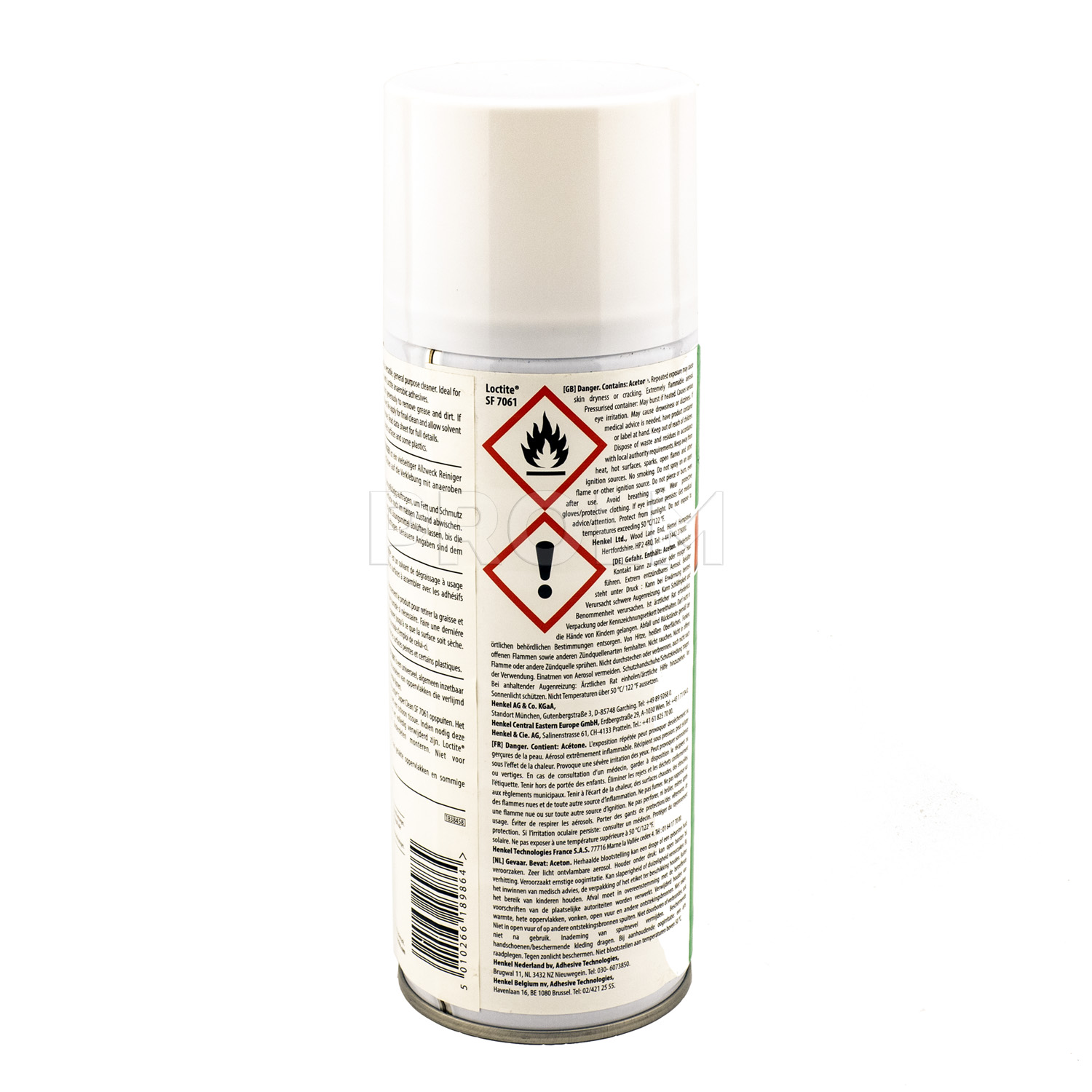 LOCTITE (Локтайт) SF 7061 - не содержащий хлорфторуглеродов состав на основе растворителя. Применяется для очистки и обезжиривания поверхностей перед применением клеев. Продукт применяется для окончательной очистки склеиваемых поверхности перед сборкой, удаляет большинство загрязнений, остатки масел, смазочных жидкостей, металлическую стружку. Благодаря высоким растворяющим свойствам продукт также может эффективно применяться и в иных случаях, когда требуется очистка или обезжиривание.