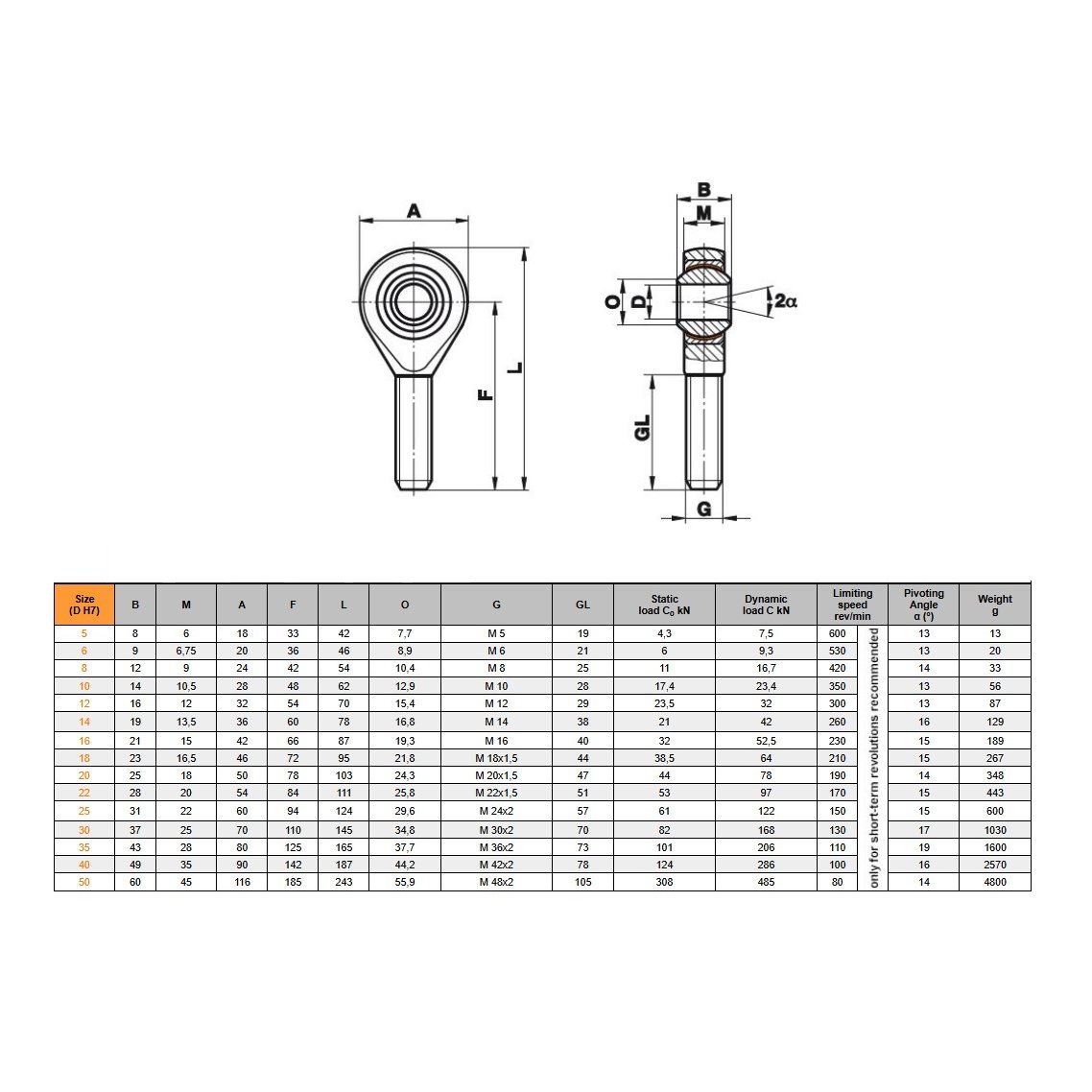 - тип подшипника: шарнирный, сталь/сталь;