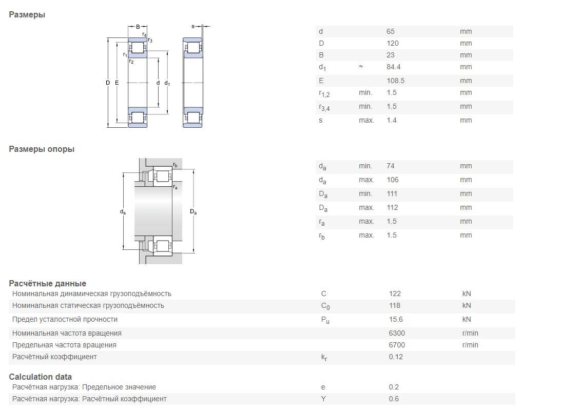 | Номинальная статическая грузоподъёмность | C0 | 118 kN |