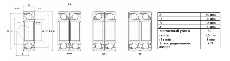 - предельная скорость при смазывании консистентной смазкой (N lim): 7400 об/мин;