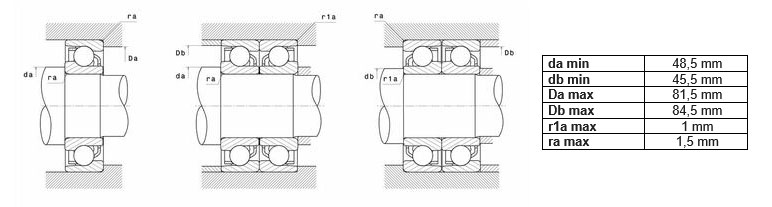 - минимальный диаметр буртика вала (db min): 45,5 мм;