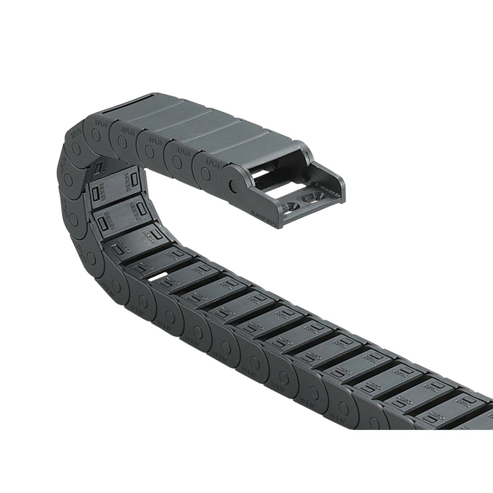Кабель-каналы серии JFLO J предназначены для защиты и направленного перемещения кабелей и шлангов в подвижных узлах станков, автоматических линий, промышленных роботов и другого оборудования. Конструкция основана на шарнирно-звеньевом принципе, что обеспечивает гибкость, прочность и устойчивость к механическим нагрузкам при постоянных циклах изгиба.