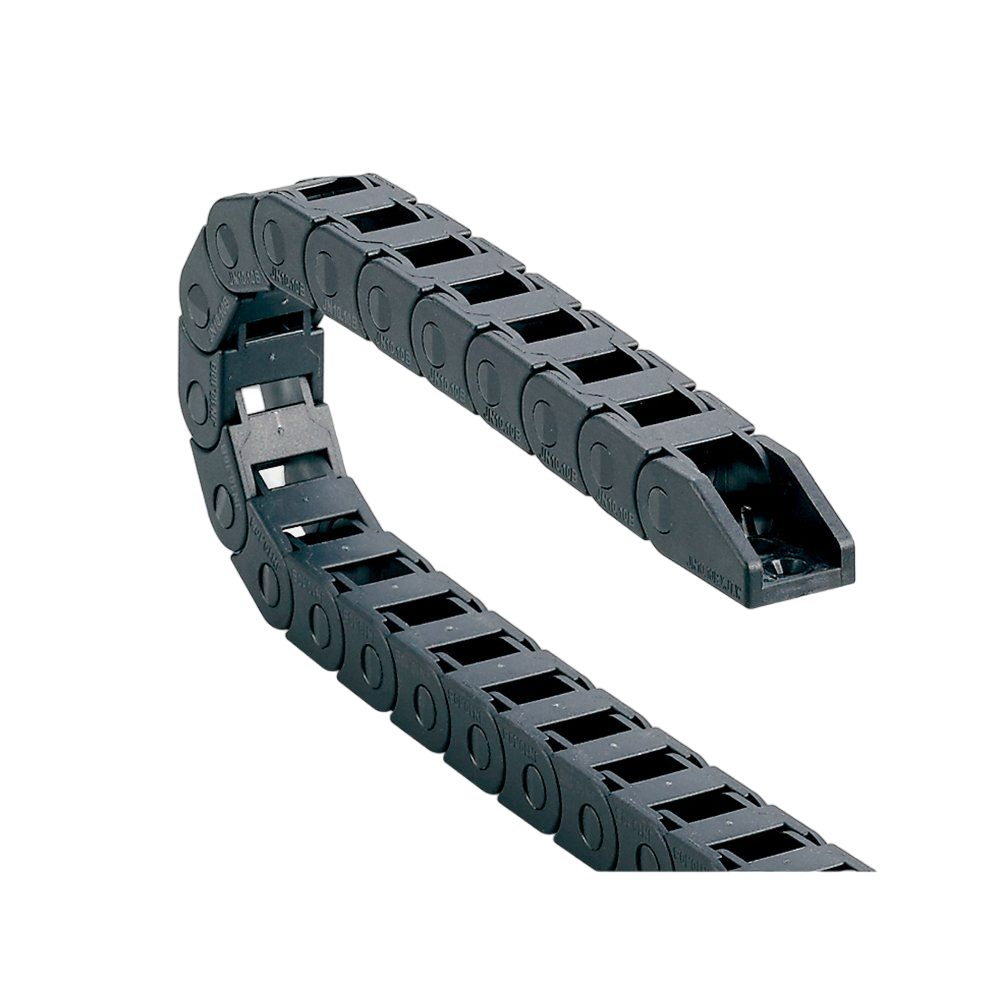 Кабель-каналы серии JFLO JN — это гибкие энергоцепи, предназначенные для защиты и направленного перемещения кабелей и шлангов в подвижных узлах станков, автоматических линий, промышленных роботов и другого оборудования. Конструкция основана на шарнирно-звеньевом принципе, что обеспечивает гибкость, прочность и устойчивость к механическим нагрузкам при постоянных циклах изгиба.
