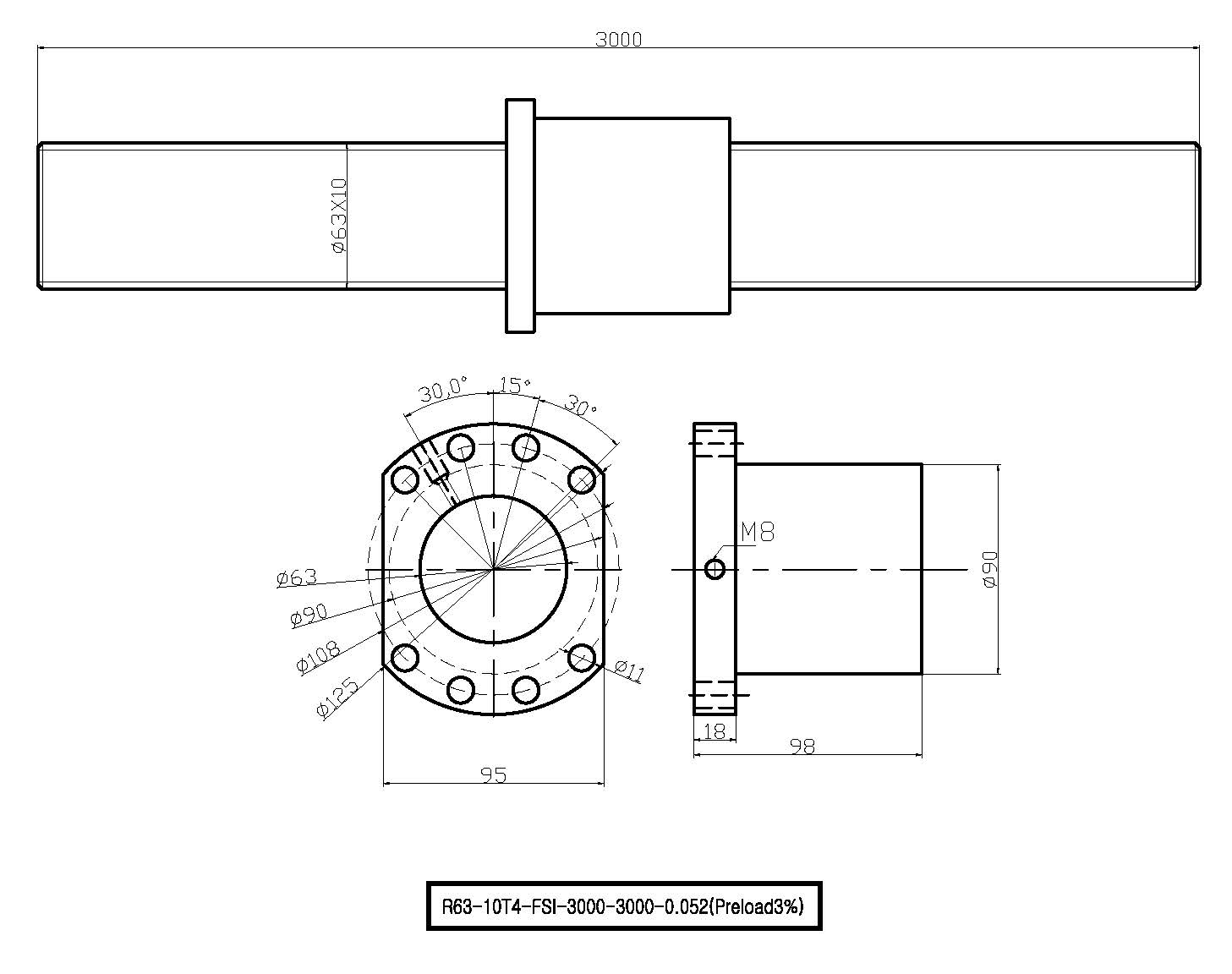 Шариковинтовой привод R63-10T4-FSI-3000-3000-0,052 с преднатягом 3% предназначен для высокоточных приложений. Он включает в себя одну гайку и винт. Диаметр винта ШВП - 63 мм, шаг - 10 мм. Масса изделия - 72,9 кг.