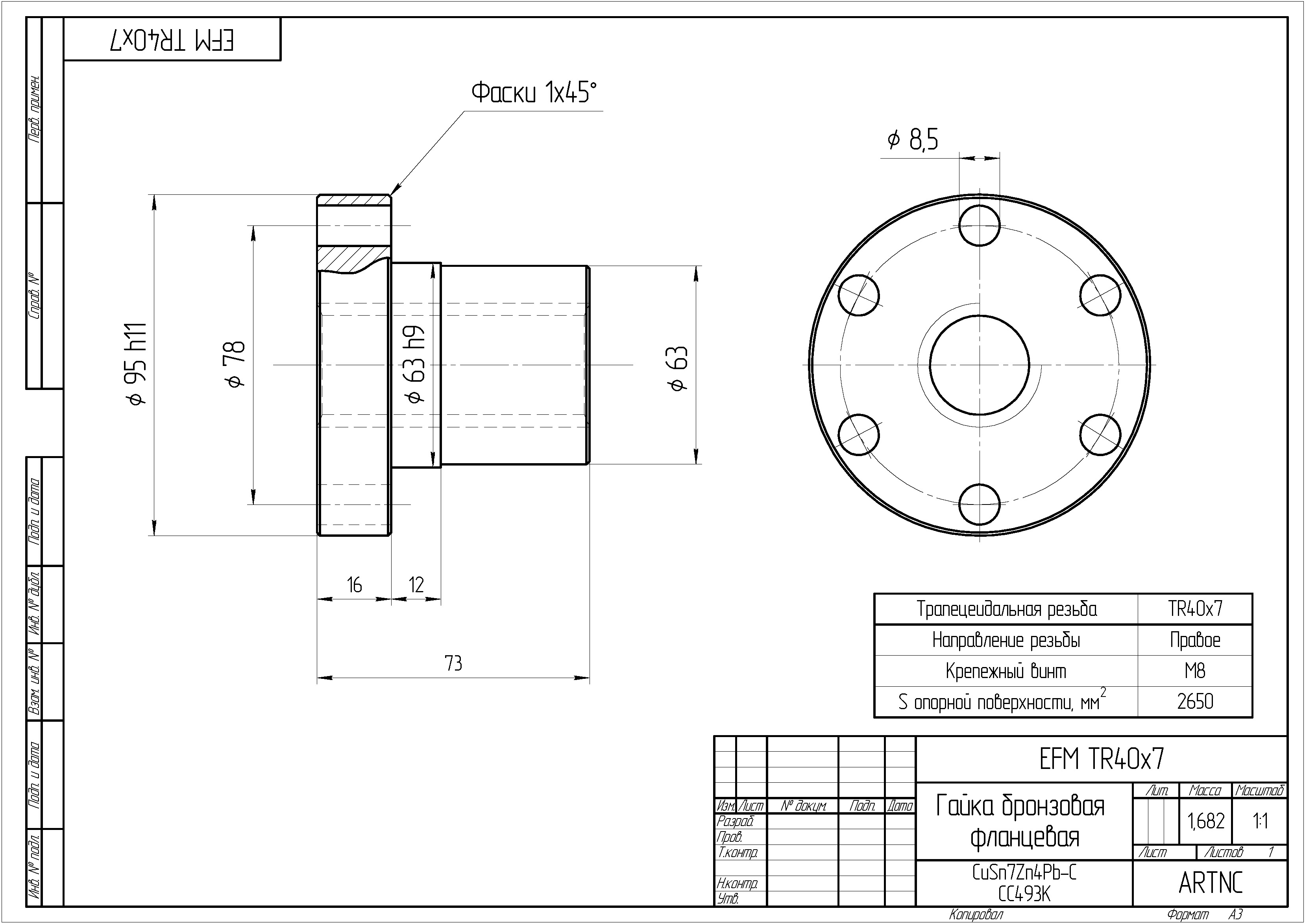 Материал изготовления: Бронза CuSn7Zn4Pb7-C CC493K