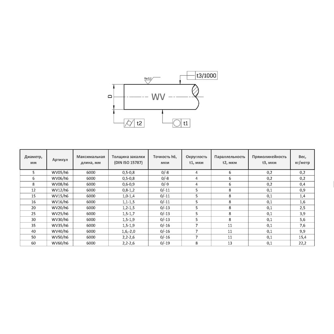 Цилиндрический вал WV16/h6 — прецизионный шлифованный вал с высоким классом точности и гладкой поверхностью. Изготовлен из закалённой стали, устойчив к износу и деформациям, что обеспечивает долгий срок службы даже при интенсивных нагрузках.