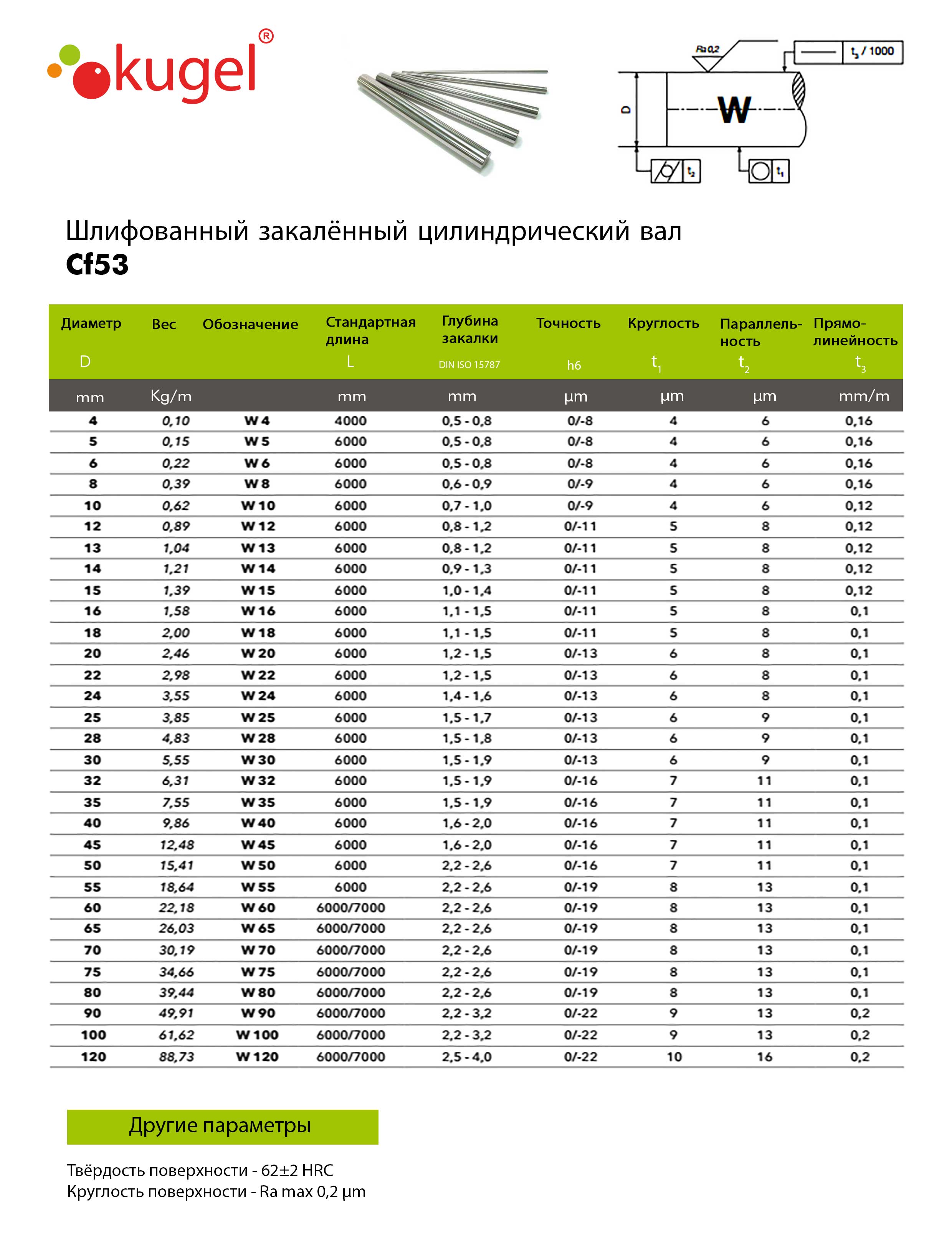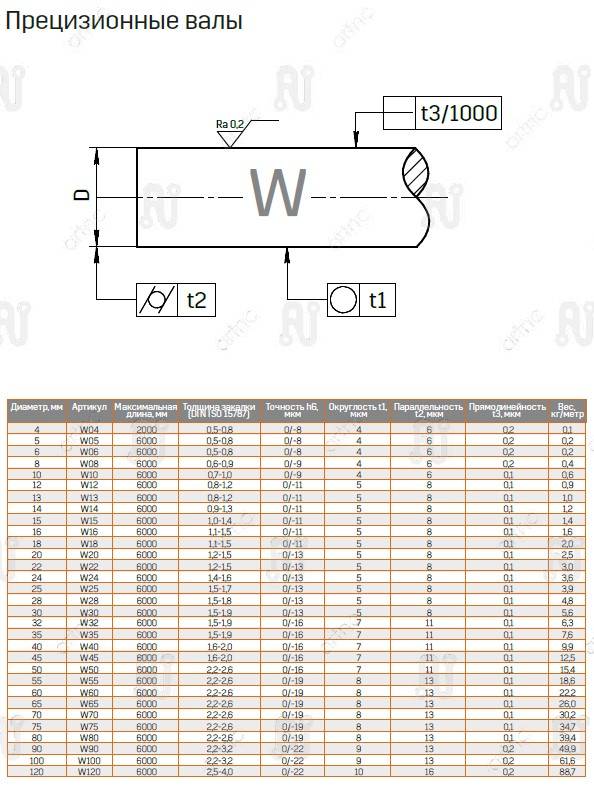 Полированный вал W10 имеет следующие основные характеристики: