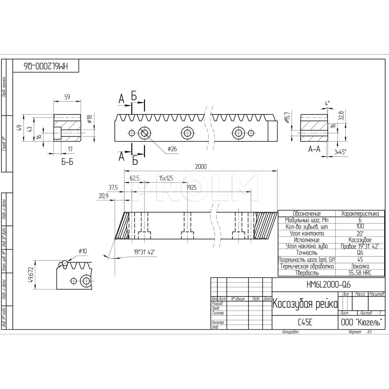 Зубчатая косозубая рейка ARTNC HM6L2000-Q6 применяется для преобразования вращательного движения в поступательное и наоборот, в зависимости от механизма, имеет отверстия для крепления и индукционную закалку зубов. Совместима с шестернями соответствующего модуля.