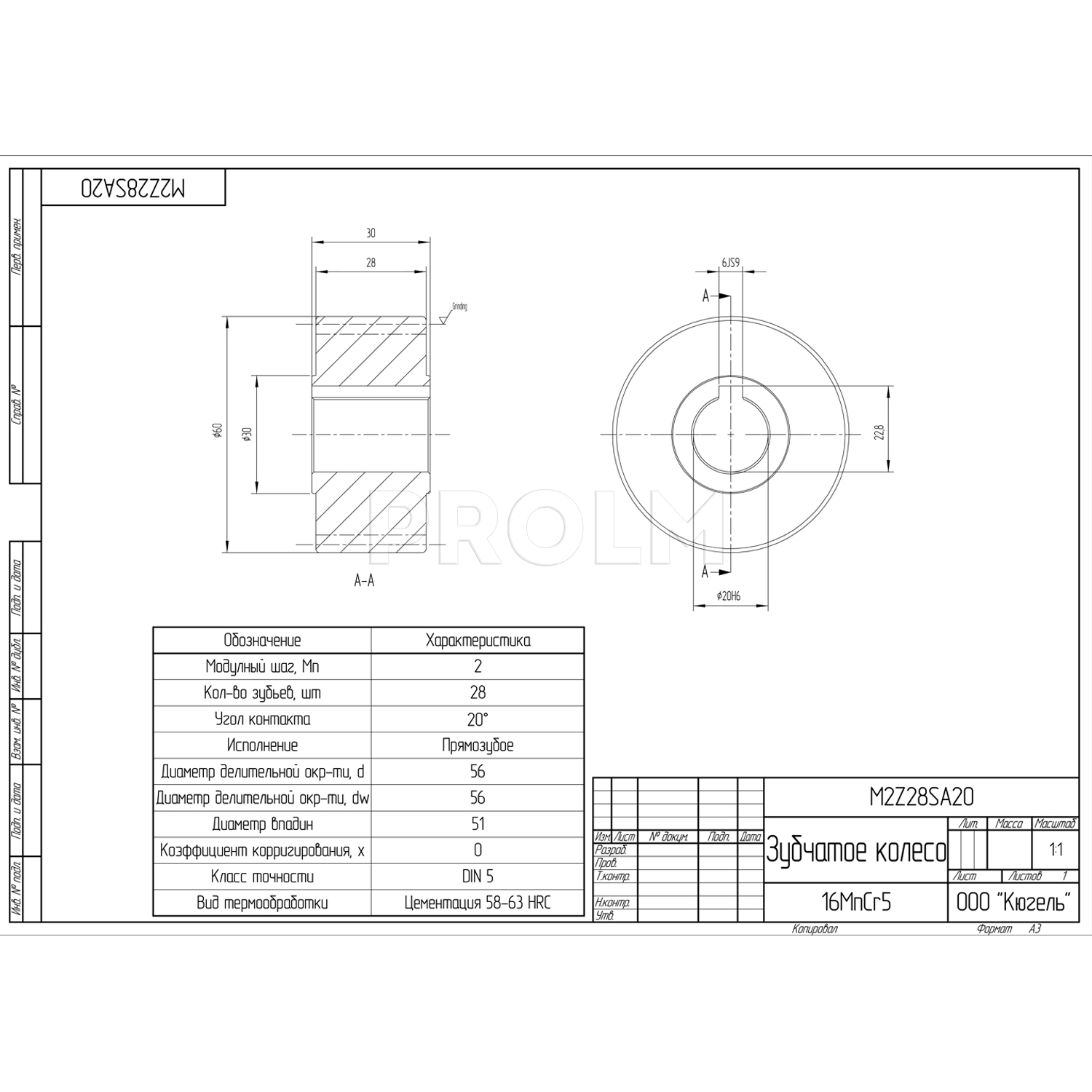 - угол профиля зуба: 20°;