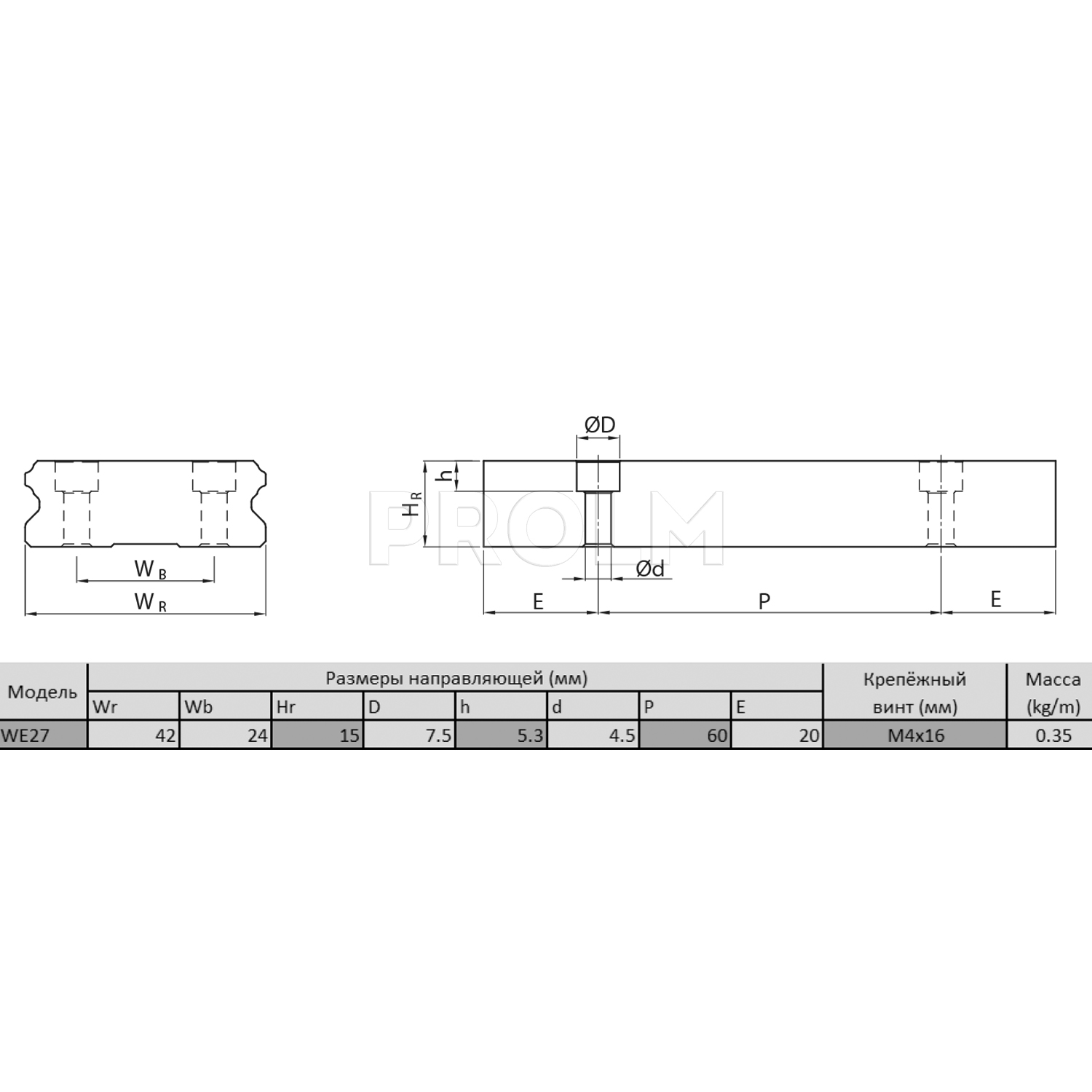 Профильная направляющая (рельс) HIWIN WER27R_H для систем линейных перемещений имеет следующие характеристики: