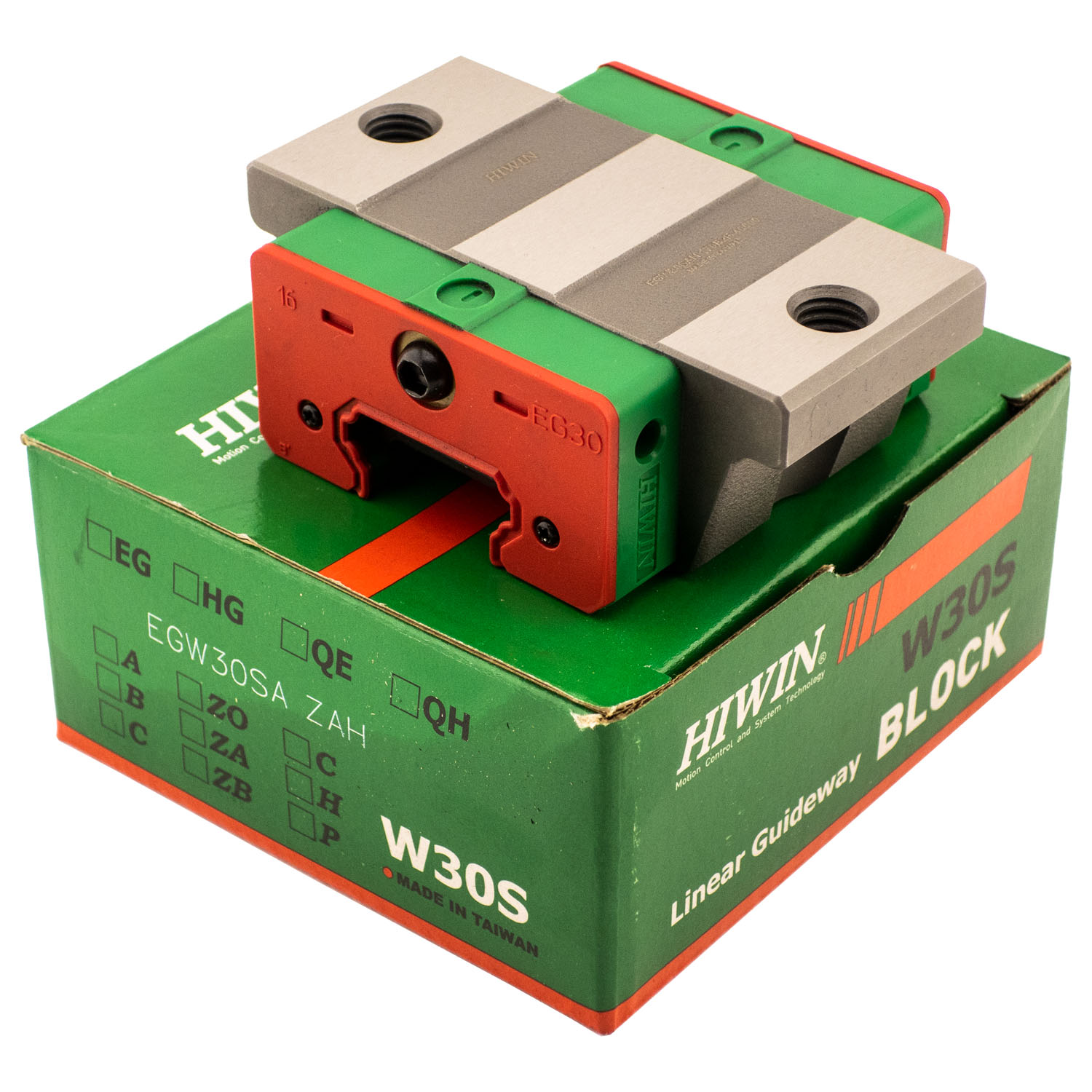 Каретка (также могут использоваться названия "блок системы линейного перемещения", "опорный блок", "направляющий блок", "танкетка", "линейный подшипник", "опорный подшипник" и прочие) HIWIN EGW30SAZAH имеет следующие параметры: