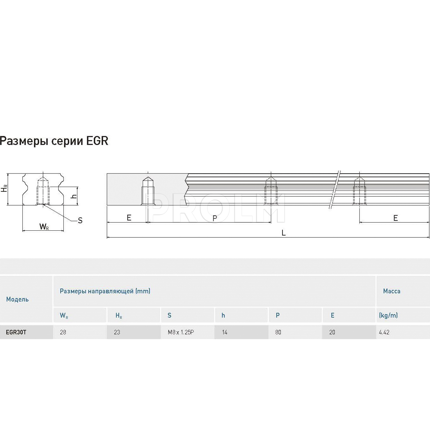 Профильная направляющая (рельс) HIWIN EGR30T_H для систем линейных перемещений имеет следующие характеристики: