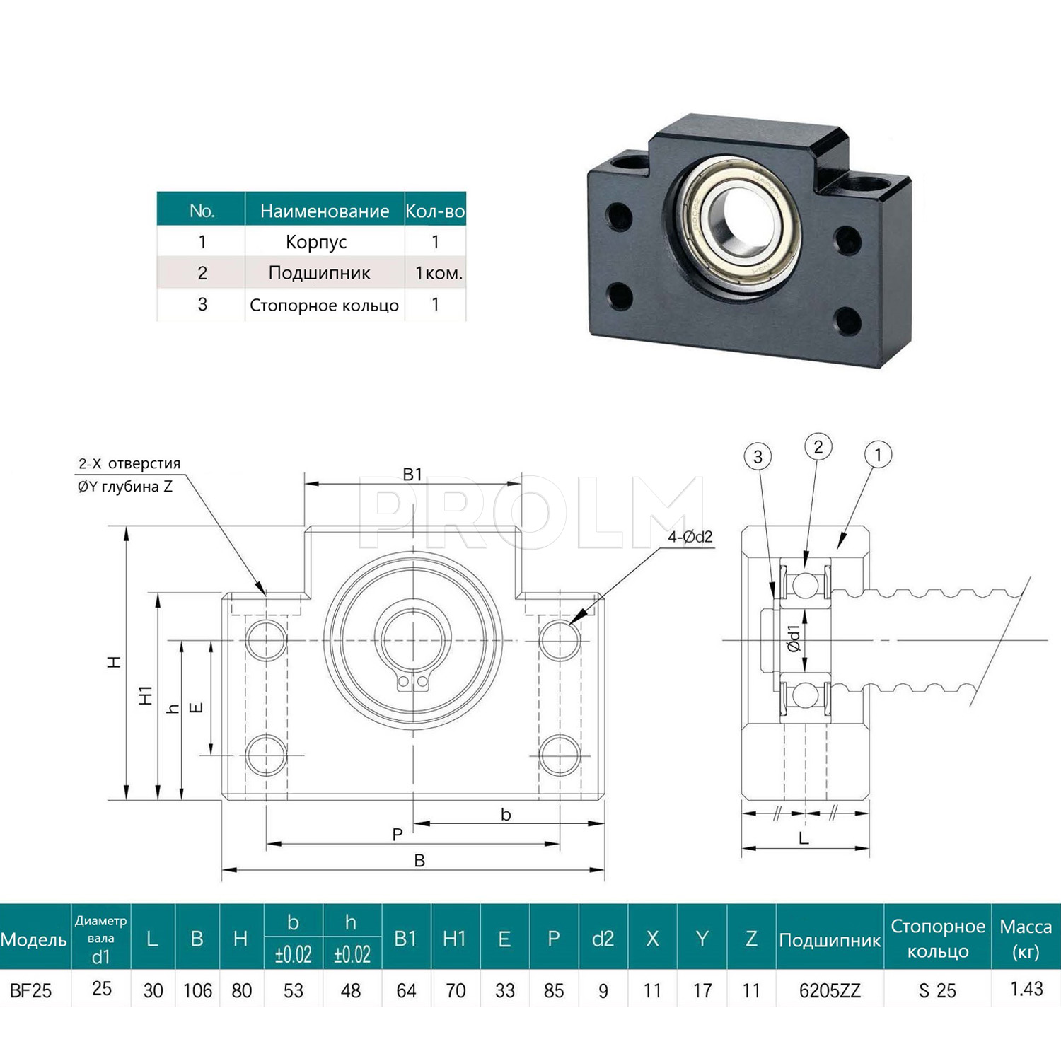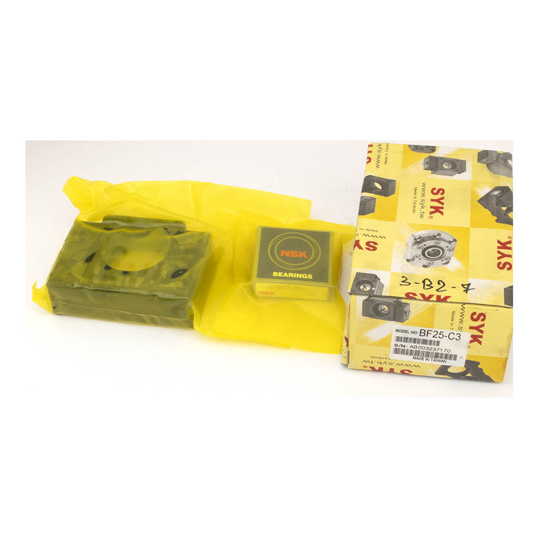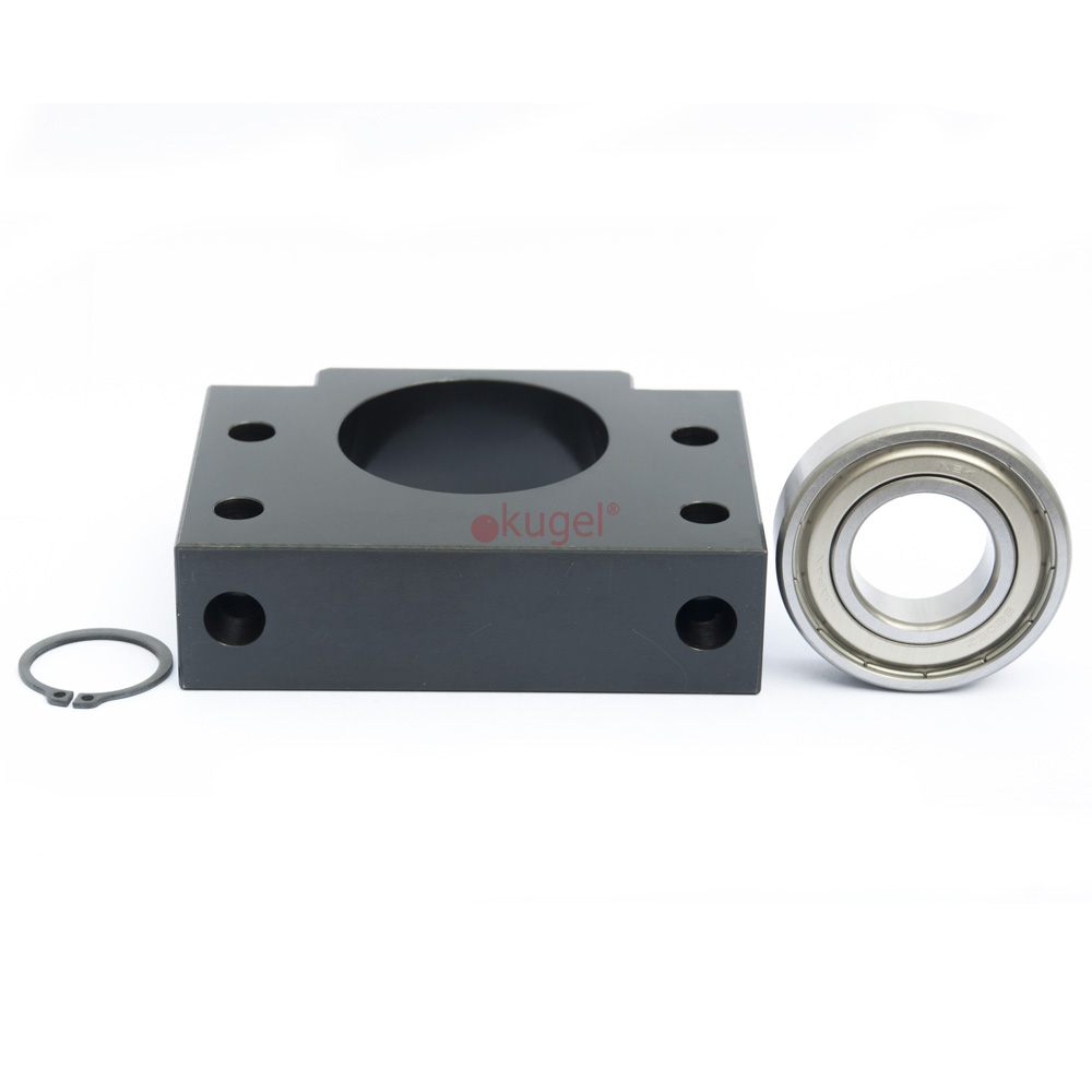 Плавающая опора для ШВП серии BF производства SYK состоит из радиального подшипника и корпуса с монтажными отверстиями. Опора предназначена для фиксации винта ШВП в радиальном направлении, не воспринимает нагрузки в осевом направлении. Опора предназначена для монтажа на параллельную либо перпендикулярную оси винта плоскости. Является парой для опоры серии BK.