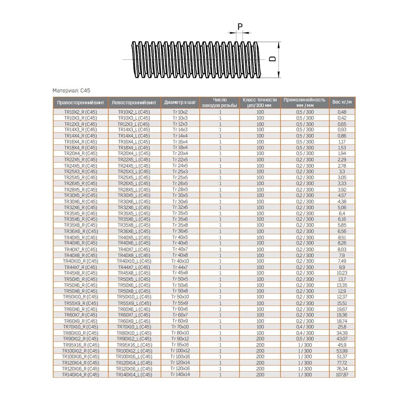 - фaорма профиля резьбы: TR - трапецеидальная;