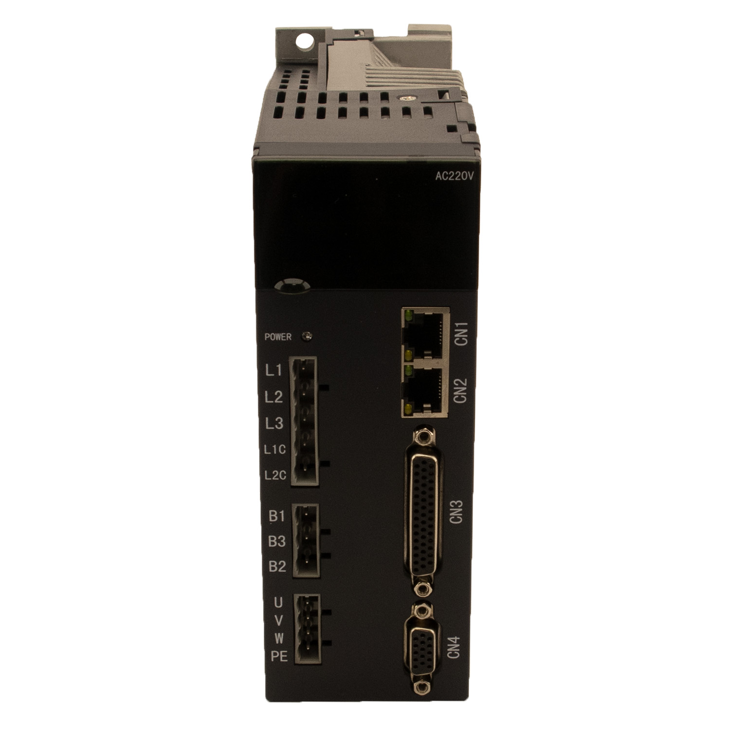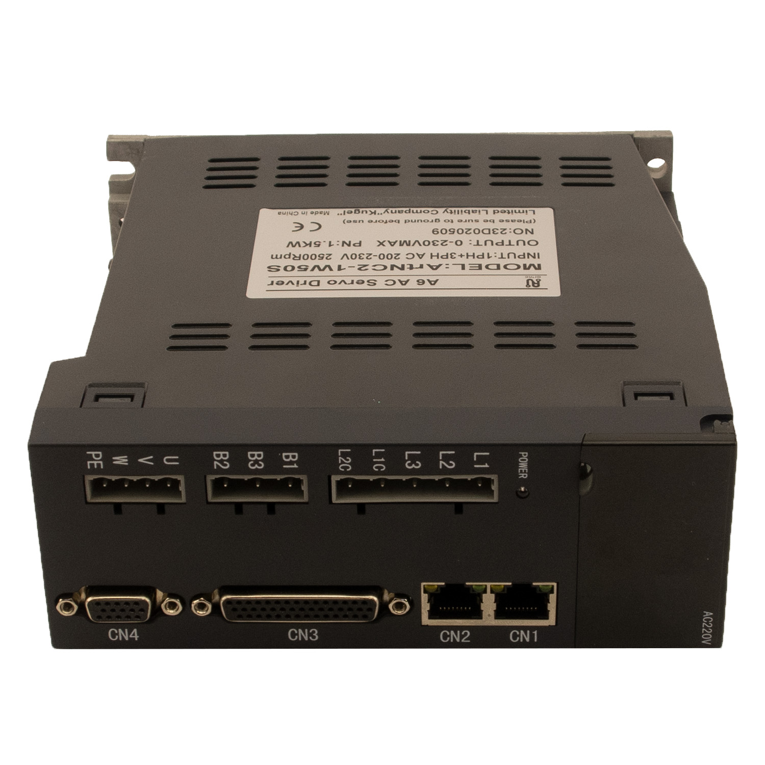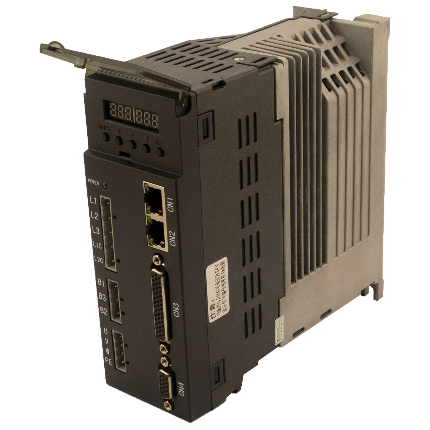 Серводрайвер серии ArtNC2 предназначен для работы с серводвигателем мощностью до 1,5 кВт с инкрементальным энкодером 2500 имп/об (10000 отсчетов на оборот). Может работать с внешним контроллером в режимах задания позиции, скорости, момента или автономно в соответствии с программой, написанной пользователем. Запитывается драйвер от 1 или 3 фаз 220В. Для настройки привода на передней панели имеется 7 сегментный дисплей с элементами управления. Для управления доступны следующие интерфейсы: импульсный, аналоговый входы, шины CANOPEN, RS485 с протоколом MODBUS RTU. Драйвер имеет выход эмулятора энкодера с настраиваемой электронной редукцией. У драйвера имеется 2 аналоговых и 8 дискретных входов, 6 дискретных выходов, функционал которых можно задать настройками. Драйвер поддерживает: