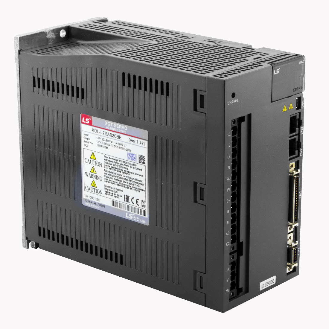 Серводрайвер серии L7SA предназначен для работы с серводвигателем мощностью до 2 кВт и может работать с внешним контроллером в режимах задания позиции, скорости или момента. Запитывается драйвер от 3 фаз 220В. Для настройки привода на передней панели имеется ЖК дисплей с 4-мя кнопками управления и USB разьем для настройки с ПК. Для управления используется стандартный интерфейс (импульсный) с дополнительными настраиваемыми дискретными входами (10шт.)/выходами (5 шт.). Драйвер работает с дифференциальными импульсными входами(до 1*10^6 имп./с.), или входами с открытым коллектором (до 2*10^5 имп./с.) и имеет выход эмулятора энкодера с настраиваемой электронной редукцией. У драйвера есть вход АЦП 12 бит, 2 аналоговых выхода. Драйвер поддерживает: