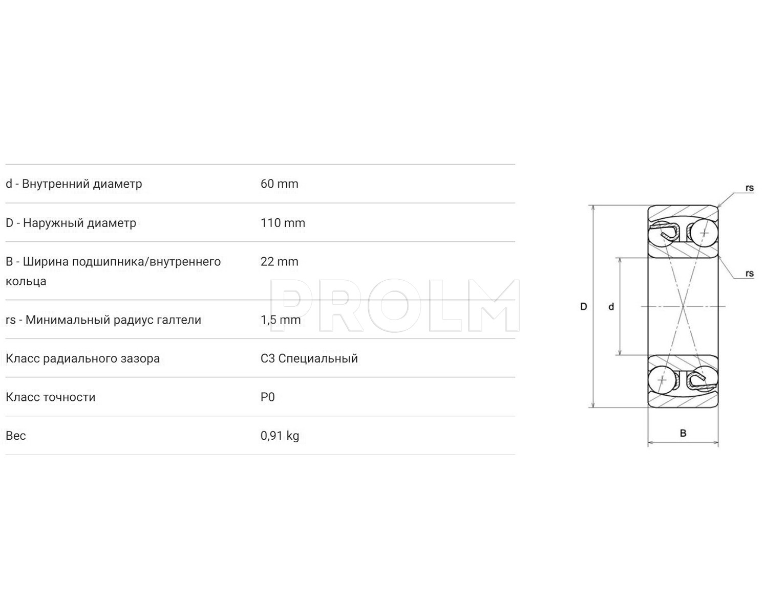 - ширина подшипника/внутреннего кольца (B): 22 мм;