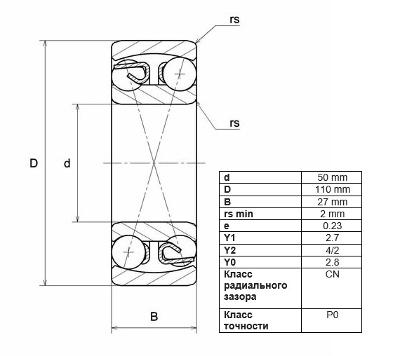 - коэффициент статической осевой нагрузки (Y0): 2.8 кН;