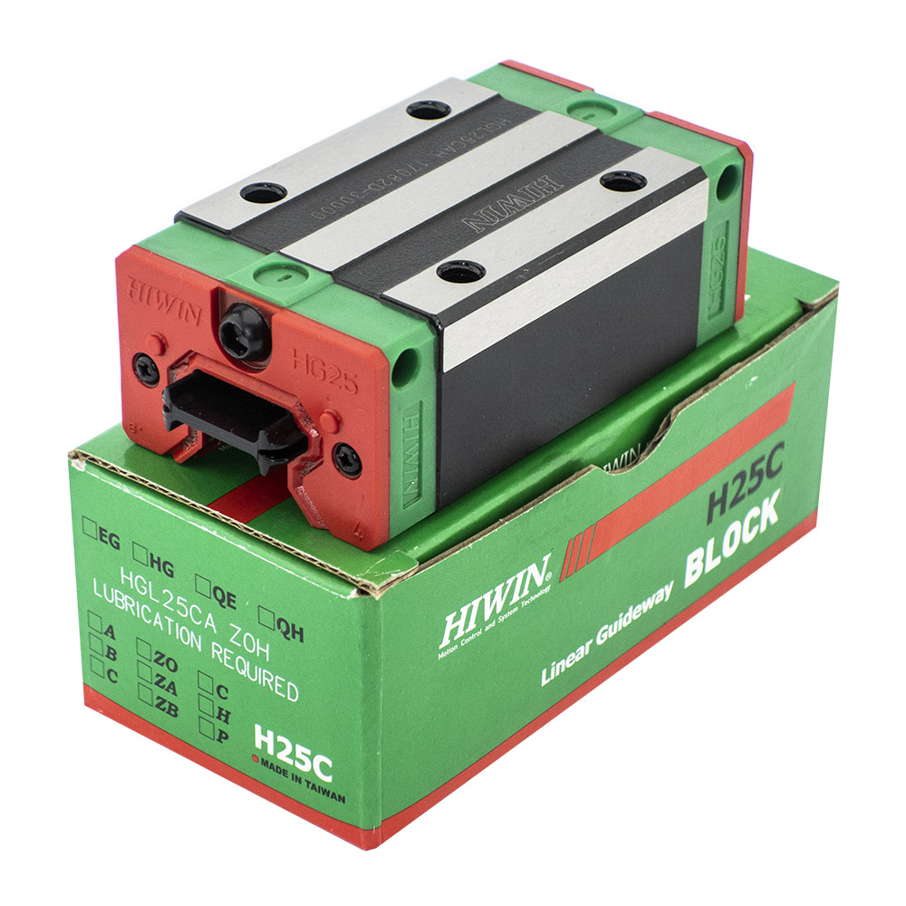 Каретка (также могут использоваться названия "блок системы линейного перемещения", "опорный блок", "направляющий блок", "танкетка", "линейный подшипник", "опорный подшипник" и прочие) HIWIN HGL25CAZAH имеет следующие параметры:
