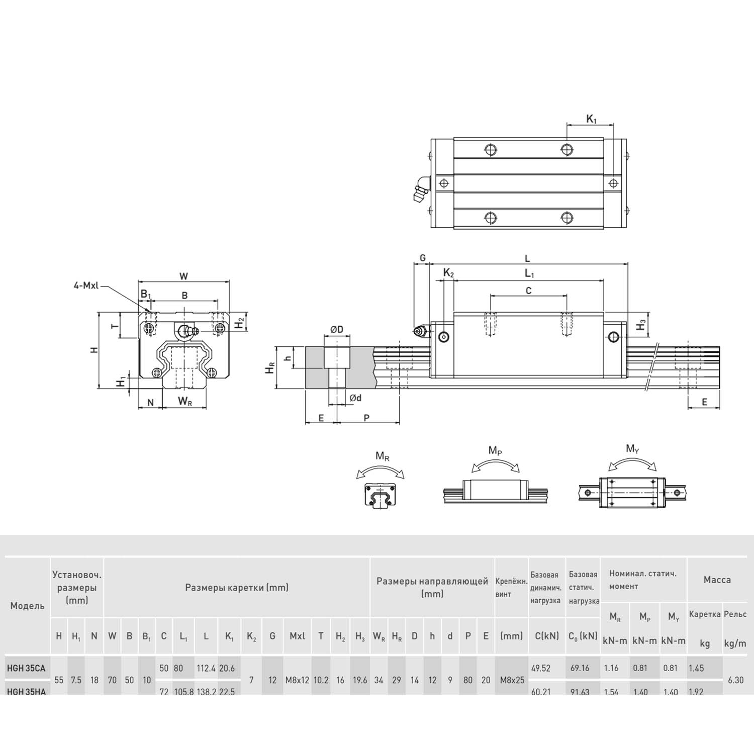HG - серия шариковых линейных направляющих высокой грузоподъемности (Heavy Load);