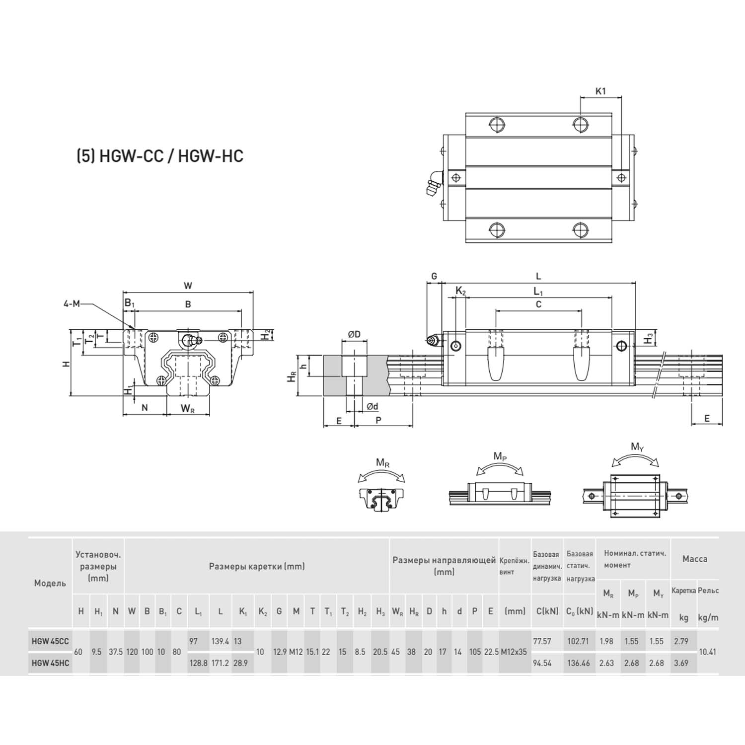 - HG - серия шариковых линейных направляющих высокой грузоподъемности (Heavy Load);
