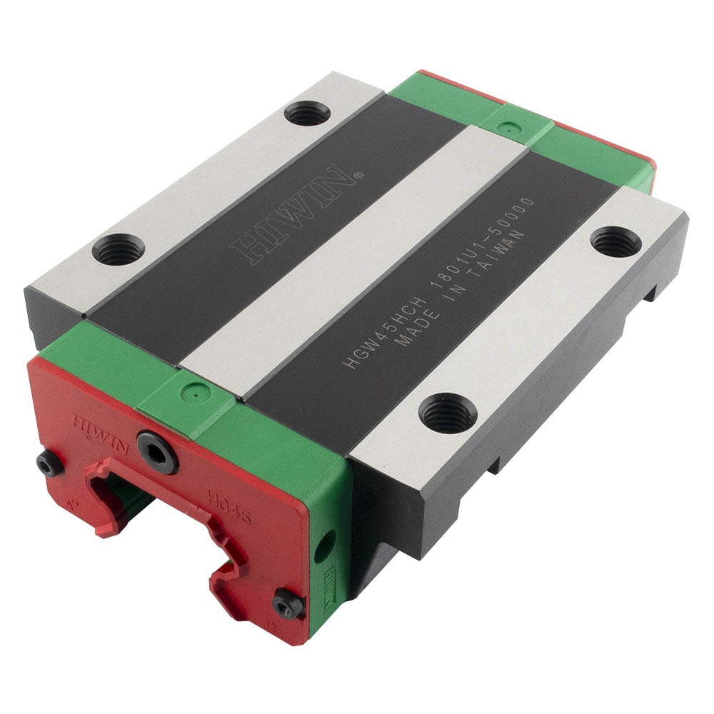 Каретка (также могут использоваться названия "блок системы линейного перемещения", "опорный блок", "направляющий блок", "танкетка", "линейный подшипник", "опорный подшипник" и прочие) HIWIN HGW45HCZAH имеет следующие параметры:
