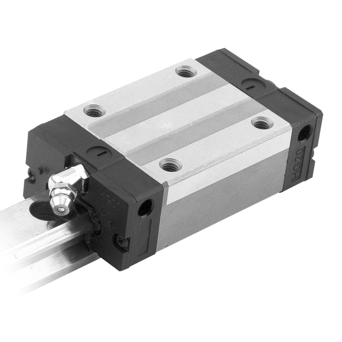 Аналог каретки ХИВИН серии HG. Имеет высокую грузоподъемность и жесткость. Четырехрядная конструкция позволяет выдерживать одинаковые нагрузки в радиальных и боковых направлениях, а профиль дорожки качения обеспечивает обширный контакт с шариками, что в свою очередь и способствует увеличению допустимых нагрузок и жесткости системы. Благодаря самовыравниванию каретка может нивелировать небольшие погрешности при монтаже и обеспечивает плавное линейное движение, обусловленное упругой деформацией элементов качения и смещением точек контакта. Наличие фиксатора предотвращает выпадение шариков при снятии блока с рельса. Данный тип линейных направляющих является взаимозаменяемым, то есть любые каретки и любые рельсы серии могут использоваться вместе, сохраняя точность и размерность.