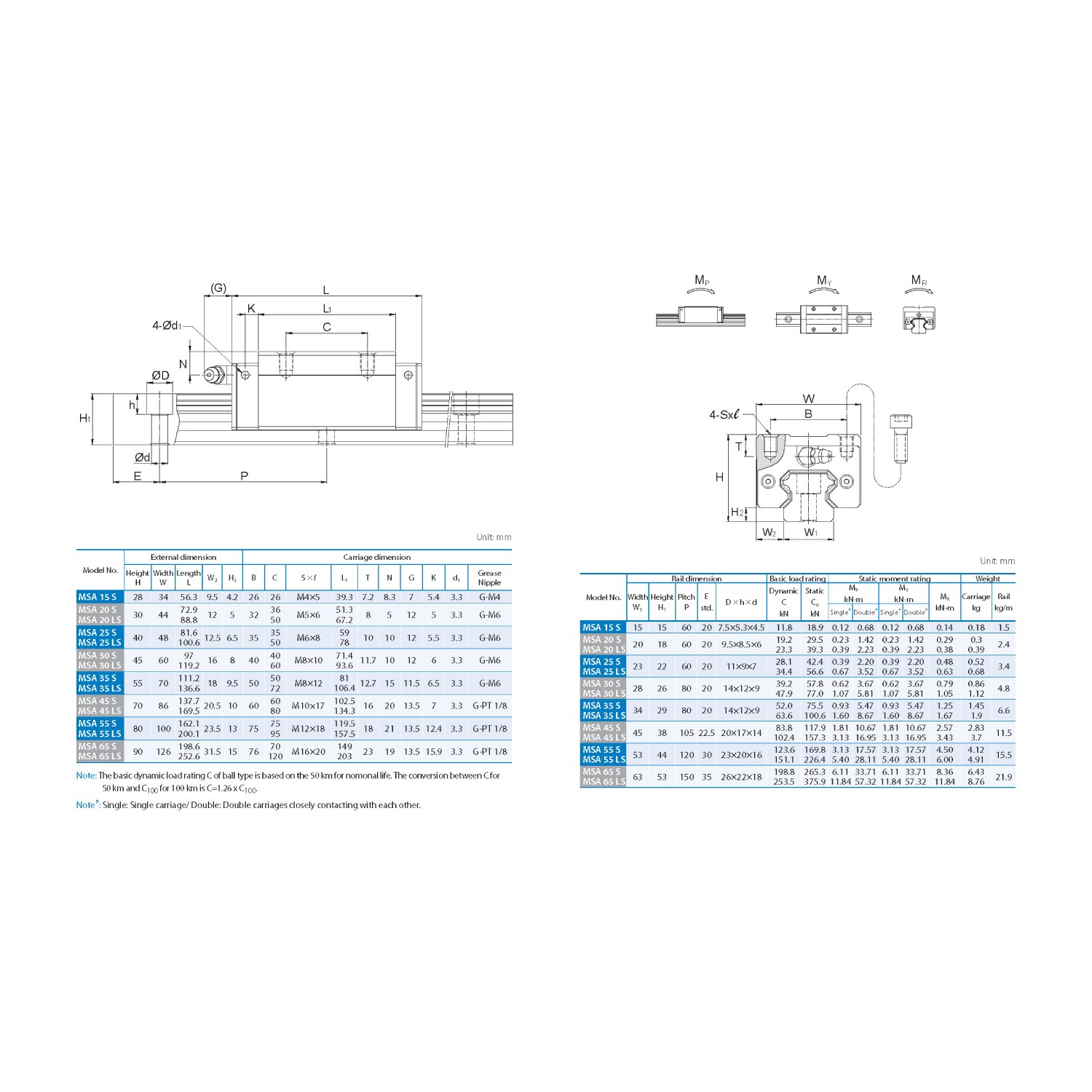 Линейные направляющие серии MSA обладают увеличенной грузоподъемностью и жесткостью. Они обеспечивают одинаковую грузоподъемность во всех направлениях благодаря четырем рядам шариков, расположенных под углом 45° (X-образная схема контакта), и способны к самовыравниванию, что компенсирует возможные ошибки установки. Это придает направляющим серии MSA длительный срок службы, высокую скорость, точность и плавное движение.
