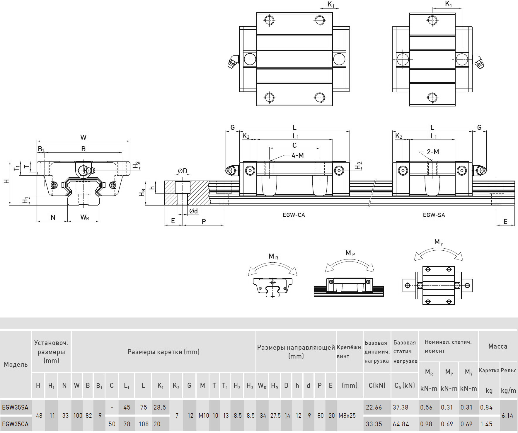 35 - типоразмер (данный параметр определяет размерную совместимость каретки и рельса с учетом серии и требуемой точности);