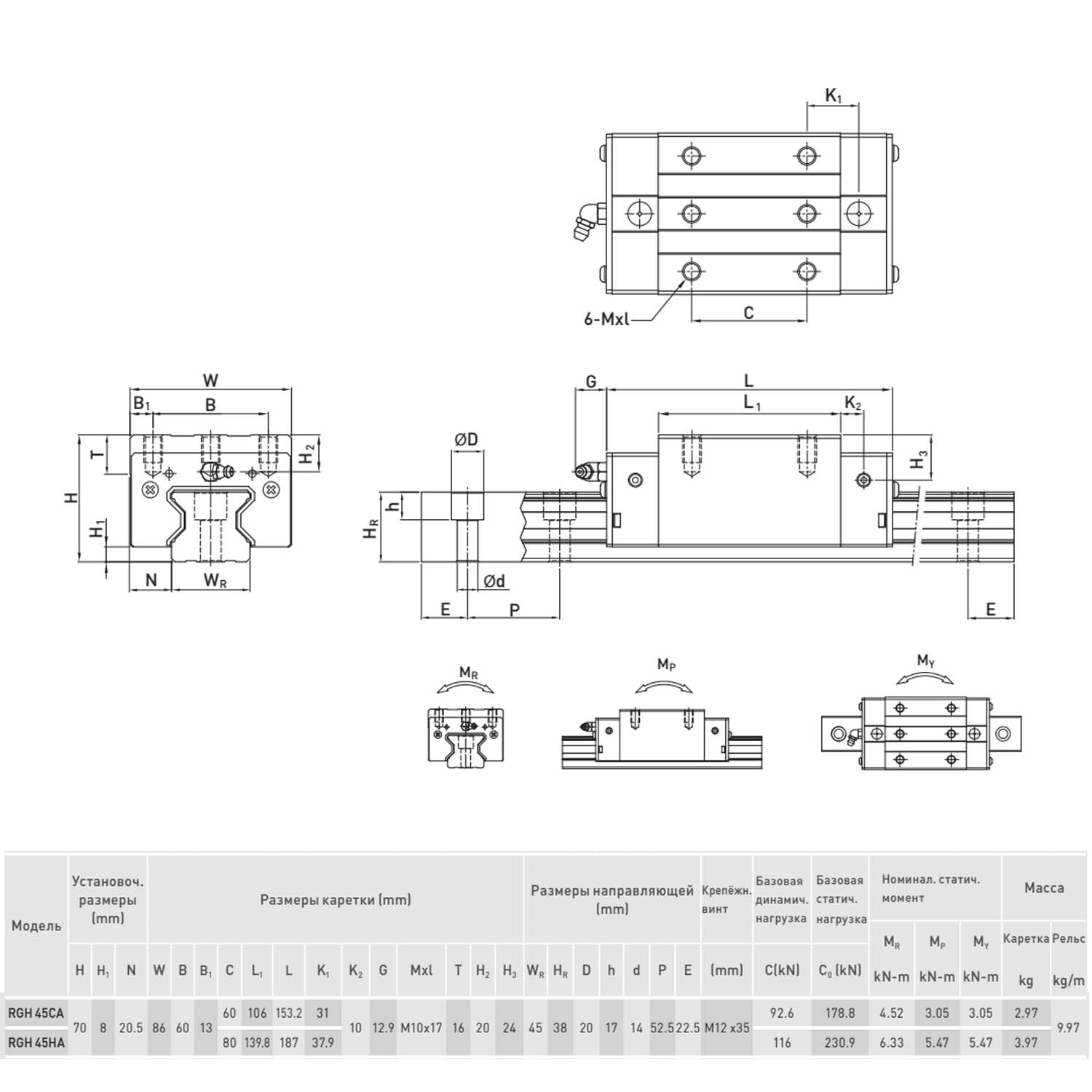 H - сверхвысокая нагрузка (базовая динамическая нагрузка C - 116 kN, базовая статическая нагрузка С0 - 230,9 kN);