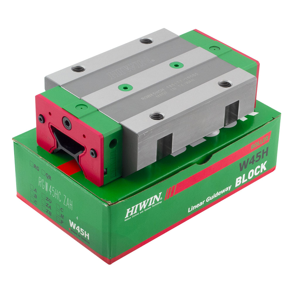 Каретка (также могут использоваться названия "блок системы линейного перемещения", "опорный блок", "направляющий блок", "танкетка", "линейный подшипник", "опорный подшипник" и прочие) HIWIN RGW45HCZAH имеет следующие параметры: