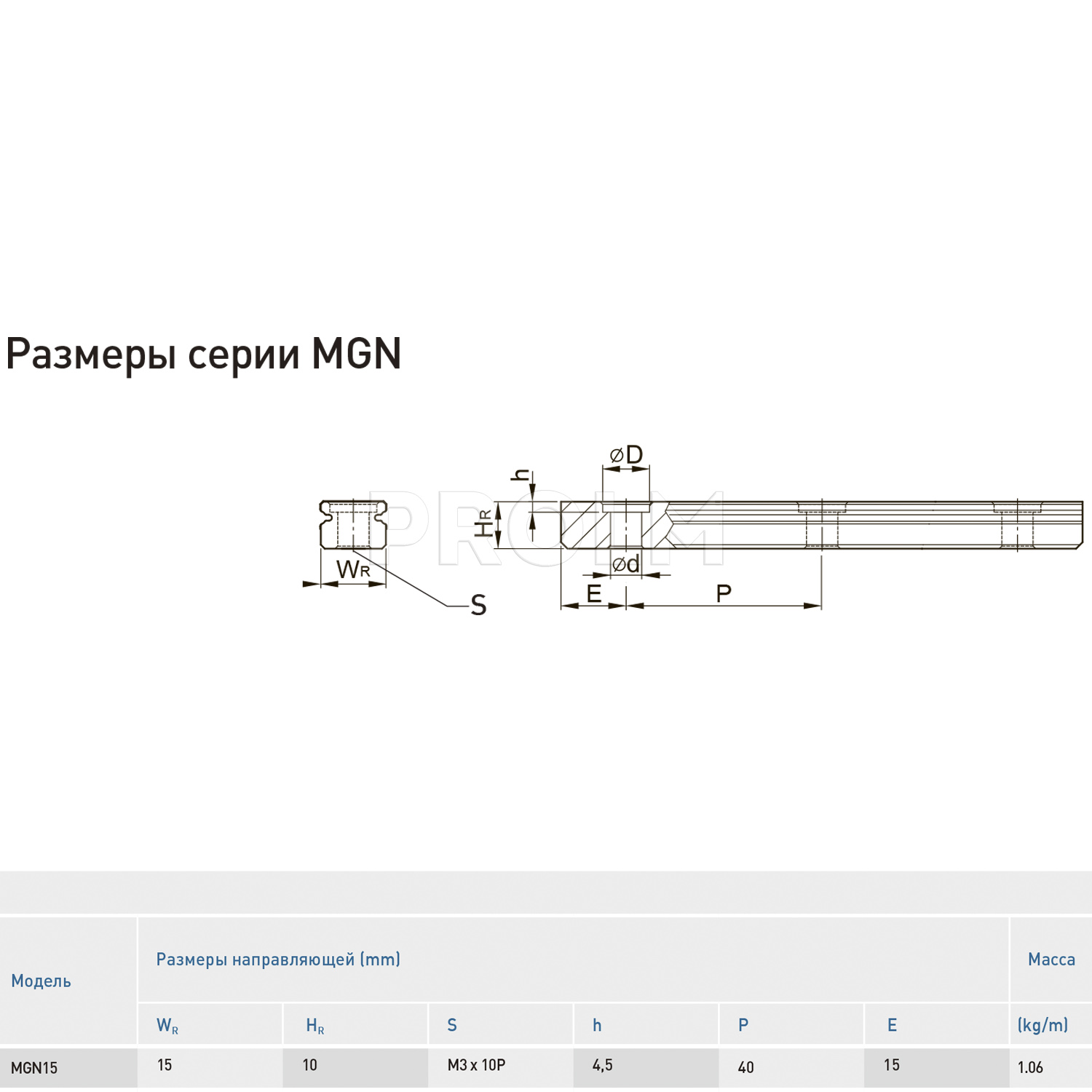 Профильная направляющая (рельс) HIWIN MGNR15R_HM для систем линейных перемещений имеет следующие характеристики: