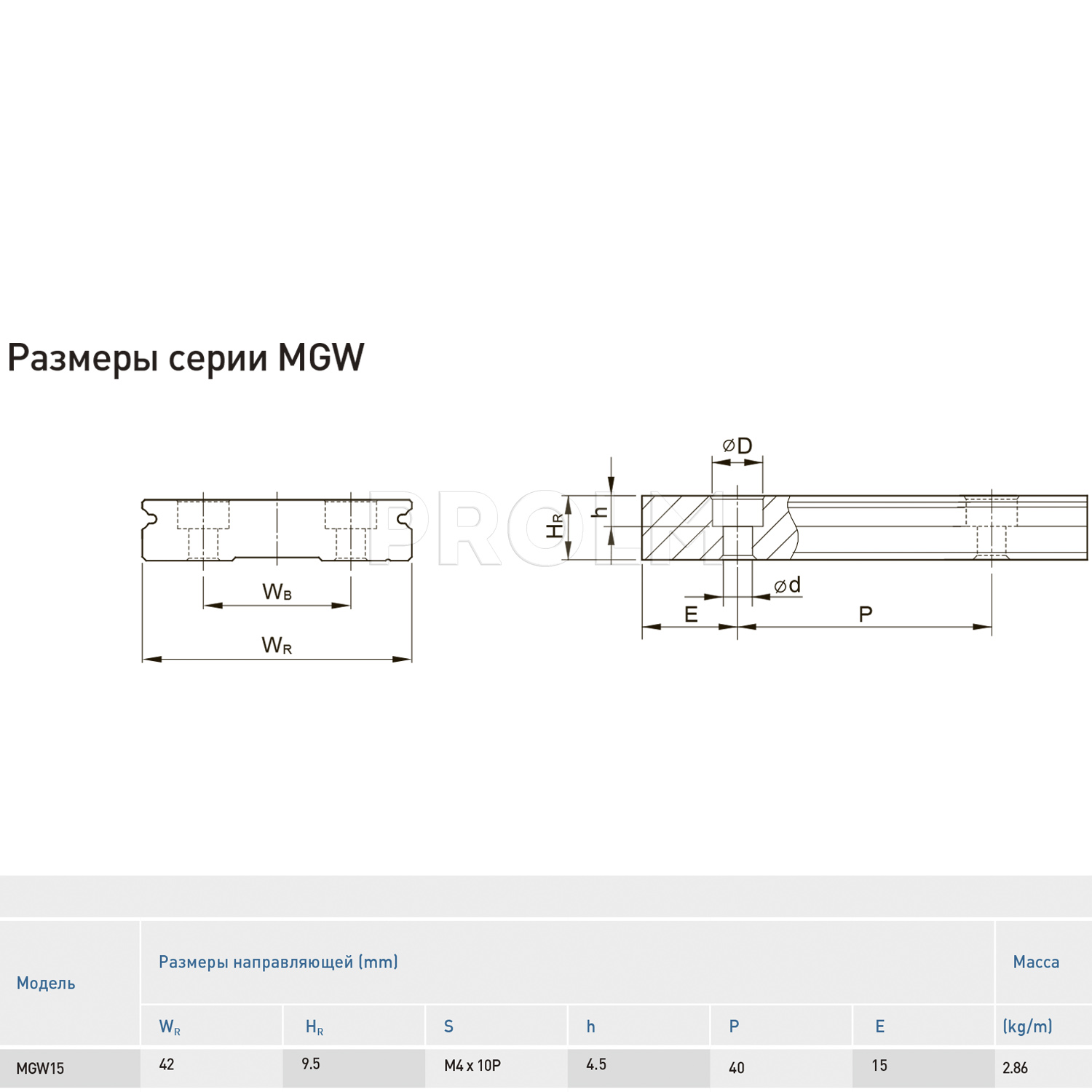 Профильная направляющая (рельс) HIWIN MGWR15R_CM для систем линейных перемещений имеет следующие характеристики:
