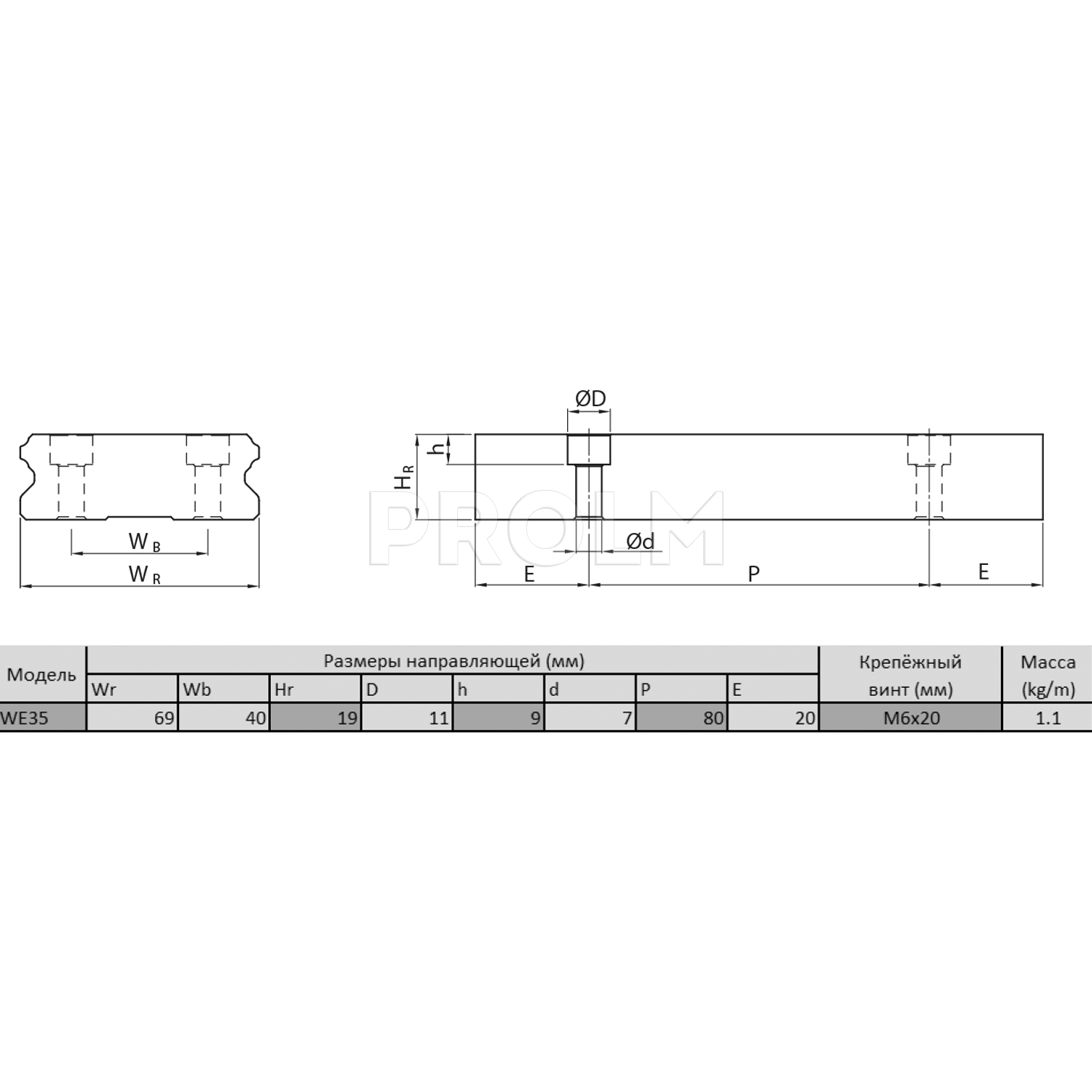 - WE - серия рельсовых направляющих с широким профилем;