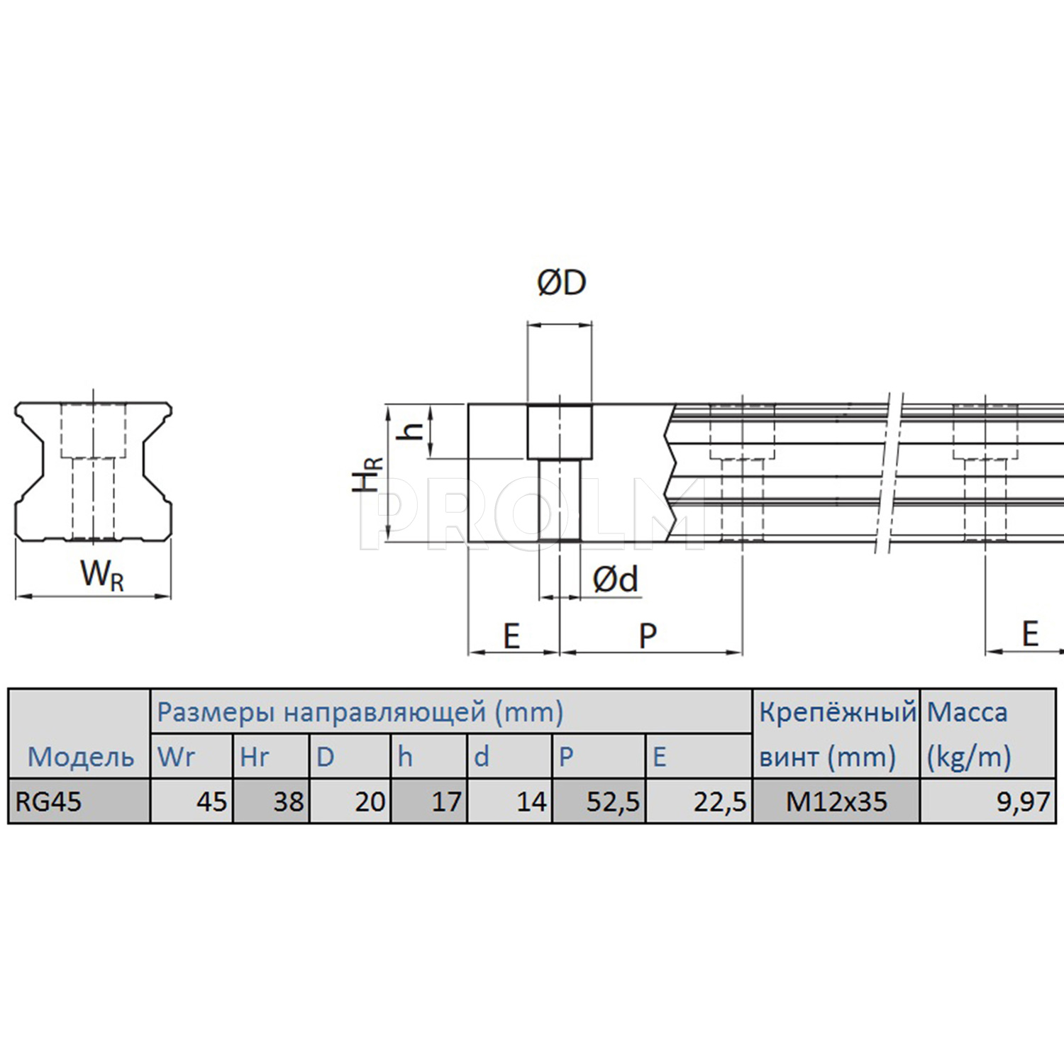 Профильная направляющая (рельс) HIWIN RGR45R_H для систем линейных перемещений имеет следующие характеристики: