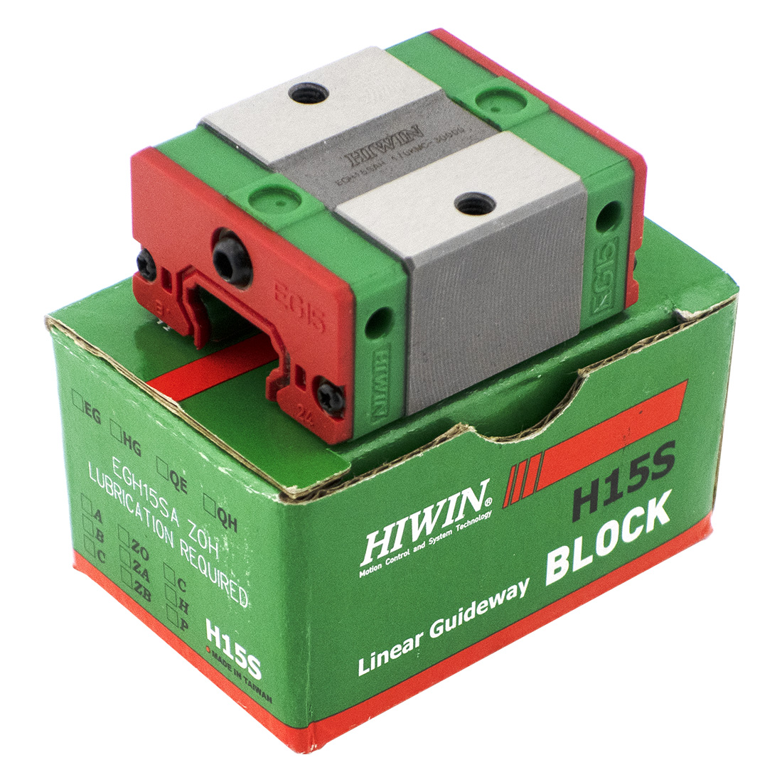 Каретка (также могут использоваться названия "блок системы линейного перемещения", "опорный блок", "направляющий блок", "танкетка", "линейный подшипник", "опорный подшипник" и прочие) HIWIN EGH15SAZAH имеет следующие параметры: