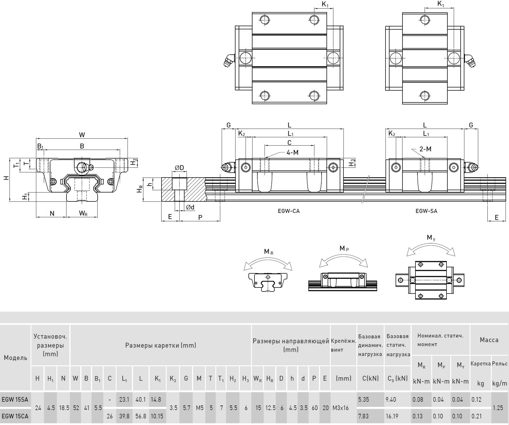 15 - типоразмер (данный параметр определяет размерную совместимость каретки и рельса с учетом серии и требуемой точности);