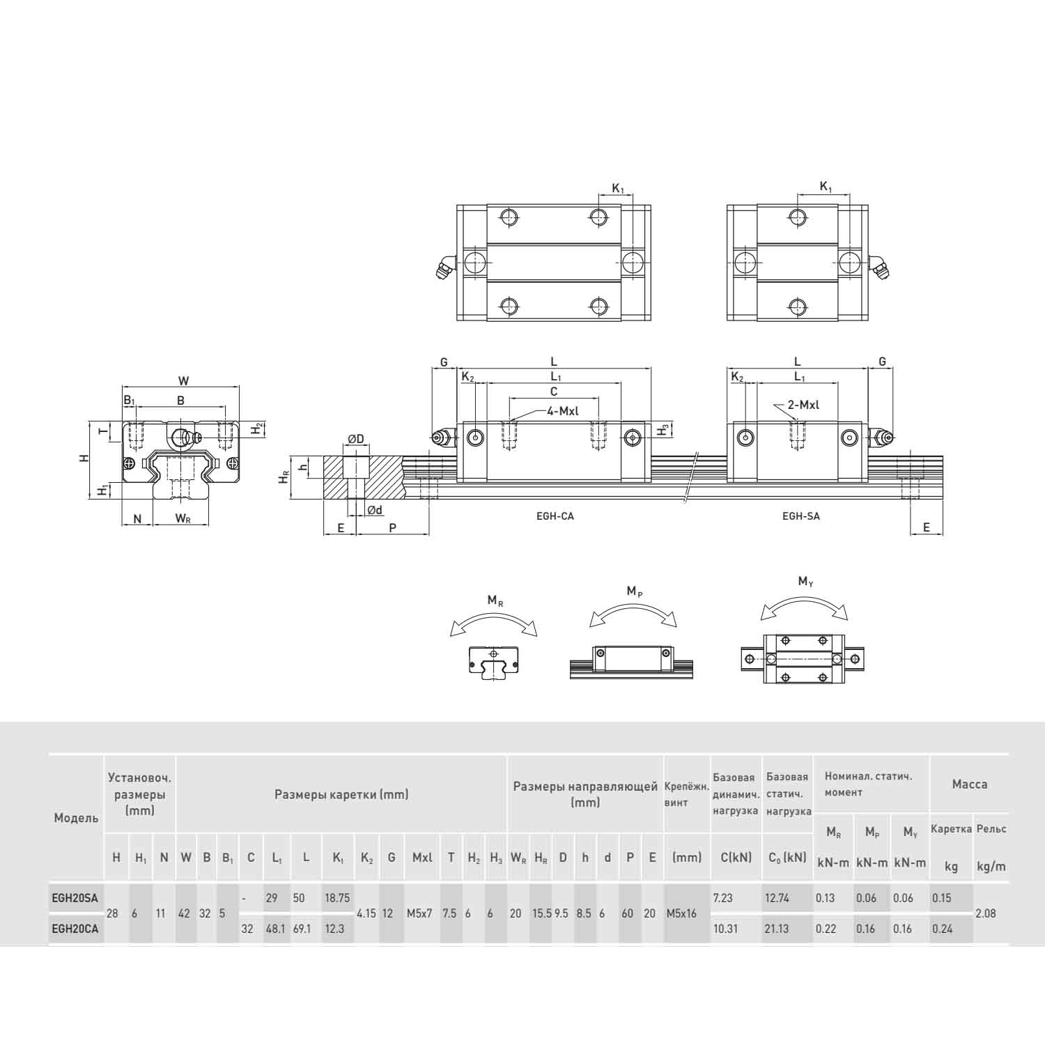 20 - типоразмер (данный параметр определяет размерную совместимость каретки и рельса с учетом серии и требуемой точности);