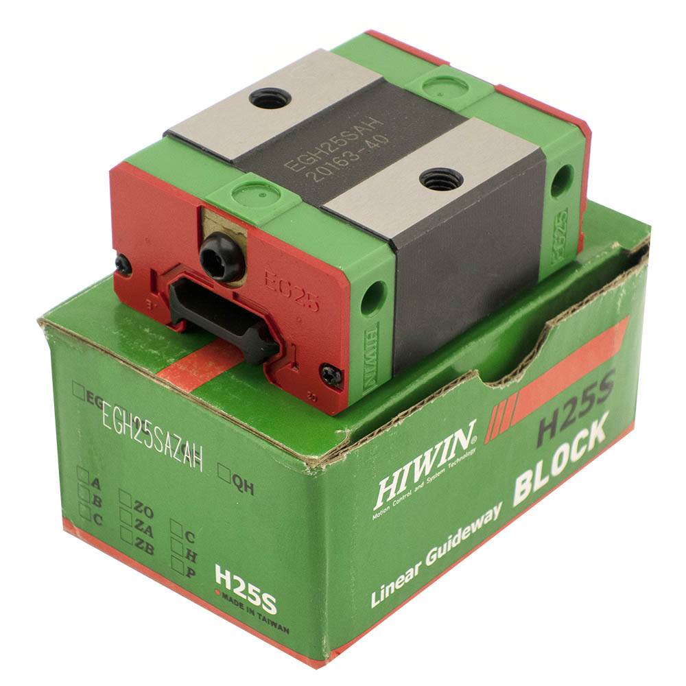 Каретка (также могут использоваться названия "блок системы линейного перемещения", "опорный блок", "направляющий блок", "танкетка", "линейный подшипник", "опорный подшипник" и прочие) HIWIN EGH25SAZAH имеет следующие параметры: