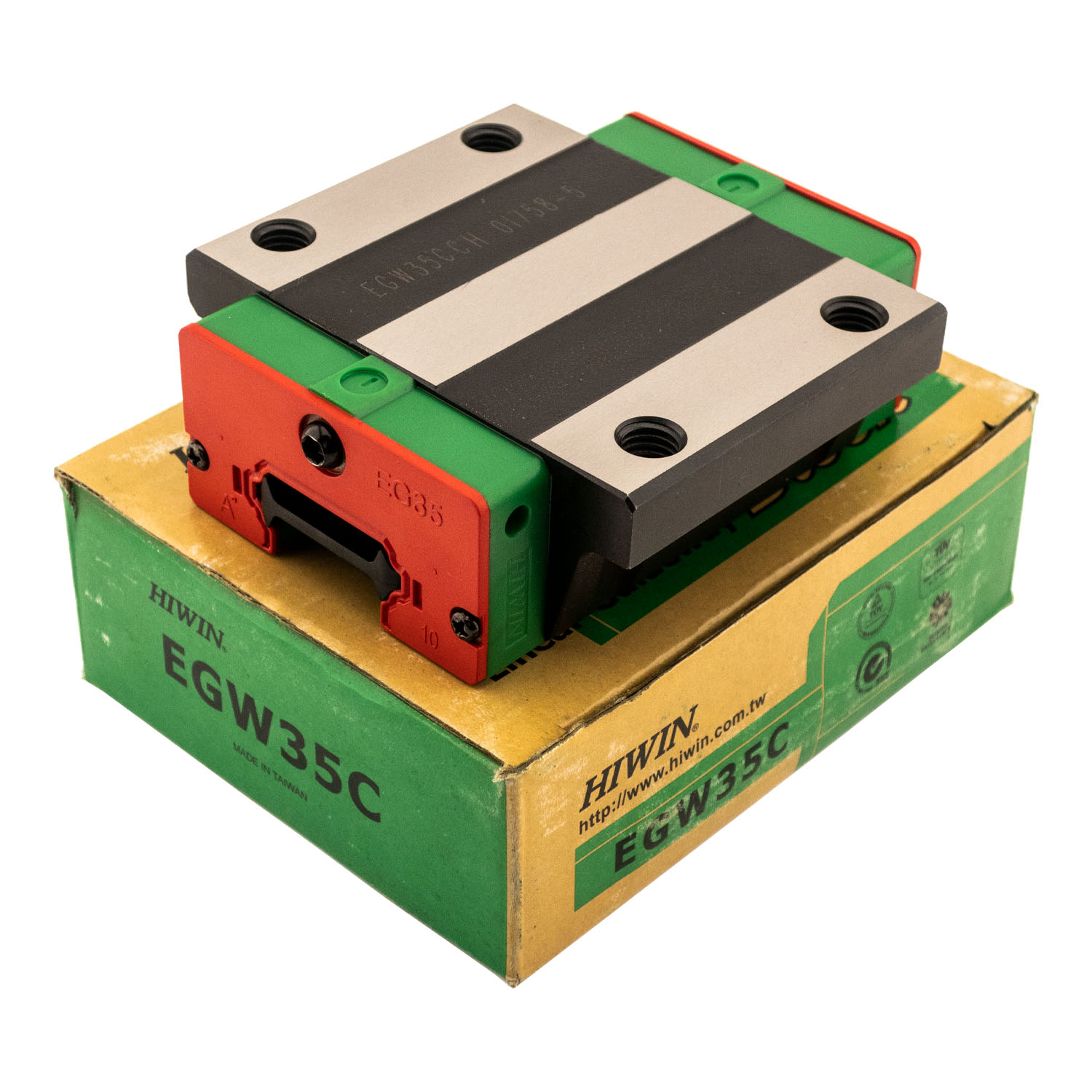 Каретка (также могут использоваться названия "блок системы линейного перемещения", "опорный блок", "направляющий блок", "танкетка", "линейный подшипник", "опорный подшипник" и прочие) HIWIN EGW35CCZ0H имеет следующие параметры: