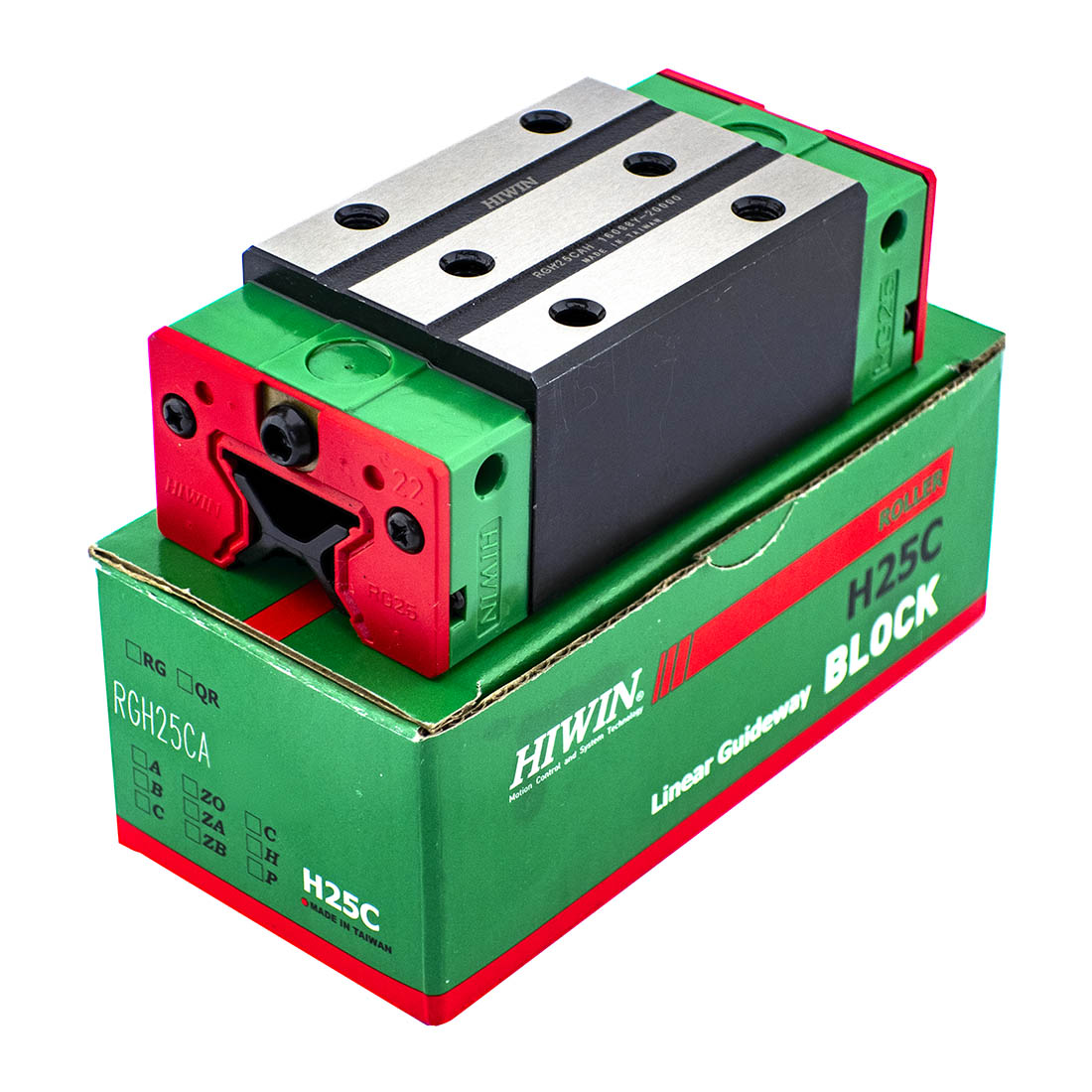 Каретка (также могут использоваться названия "блок системы линейного перемещения", "опорный блок", "направляющий блок", "танкетка", "линейный подшипник", "опорный подшипник" и прочие) HIWIN RGH25CAZBP имеет следующие параметры: