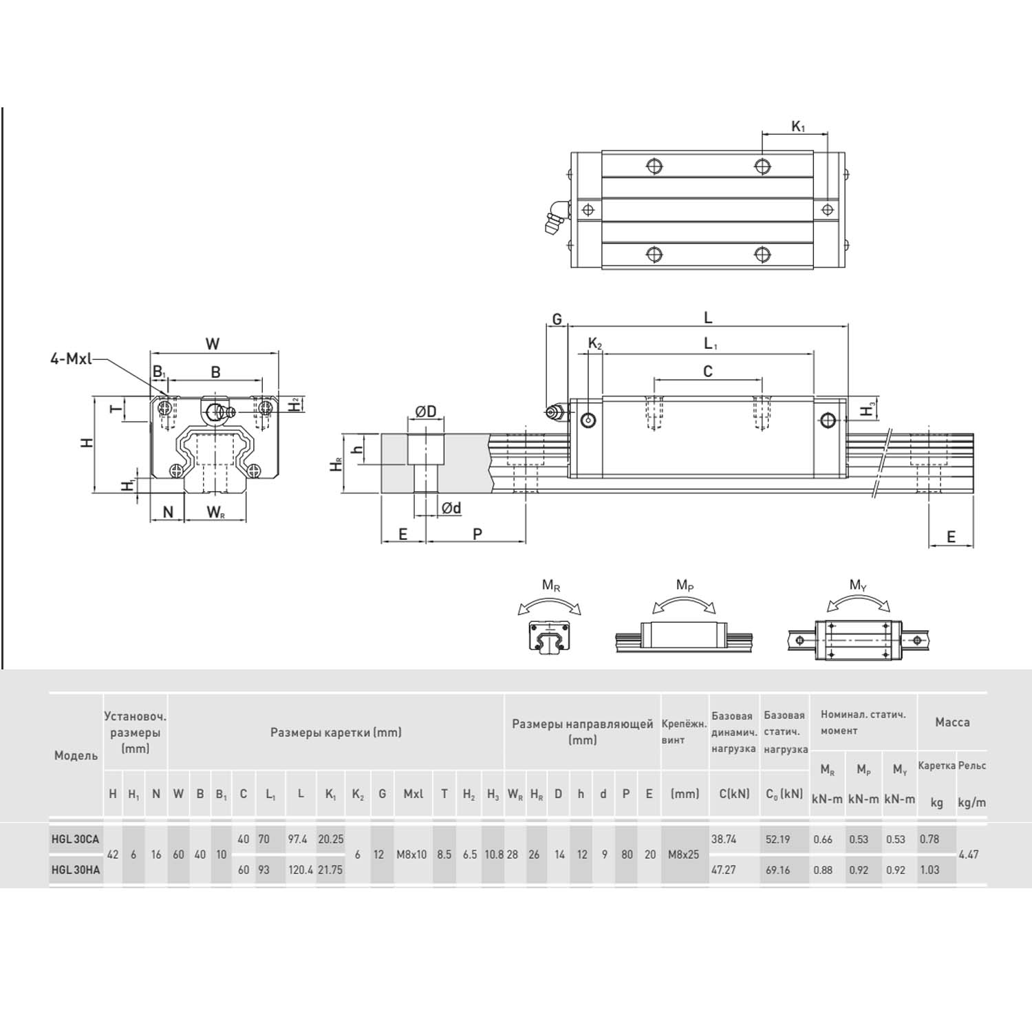 HG - серия шариковых линейных направляющих высокой грузоподъемности (Heavy Load);