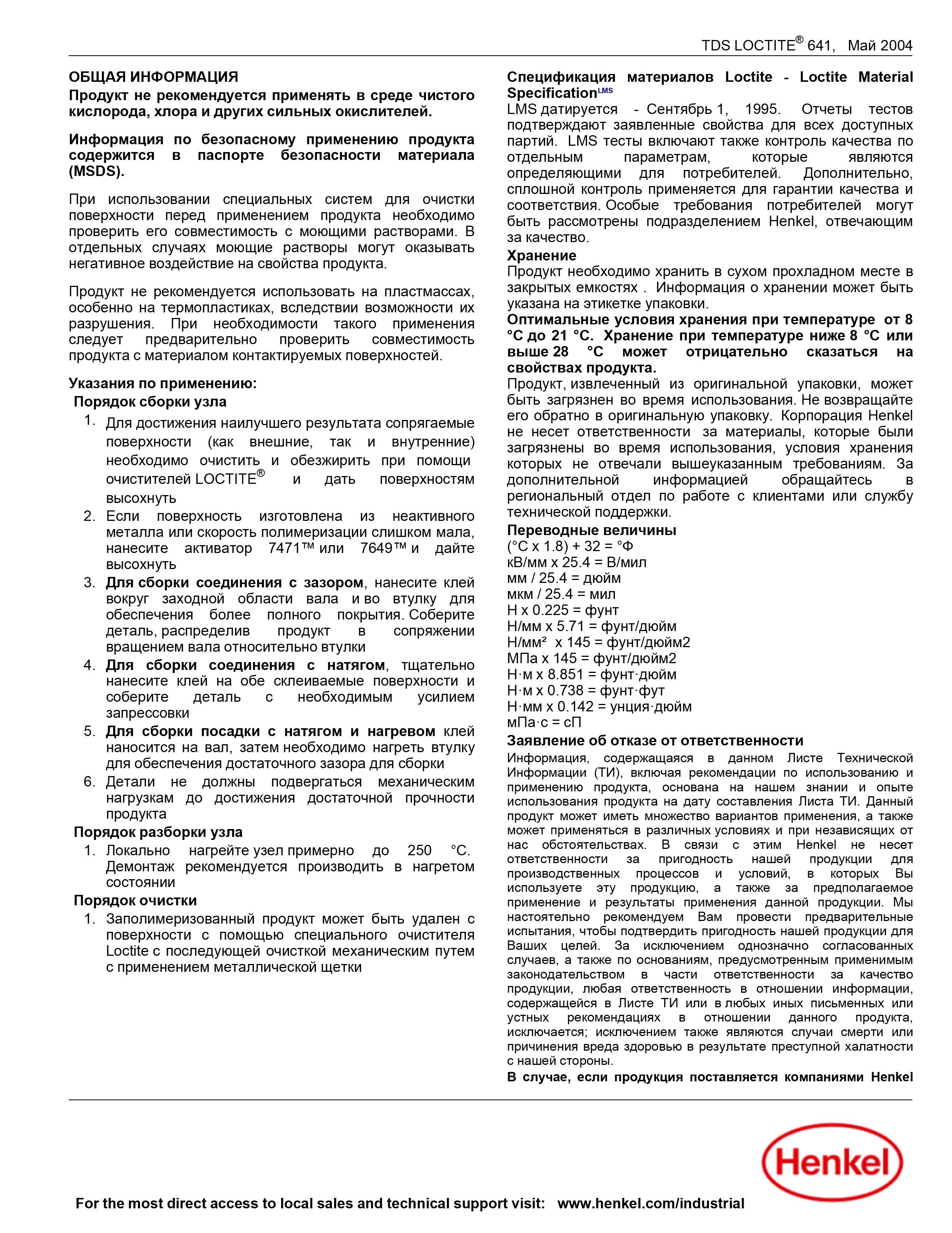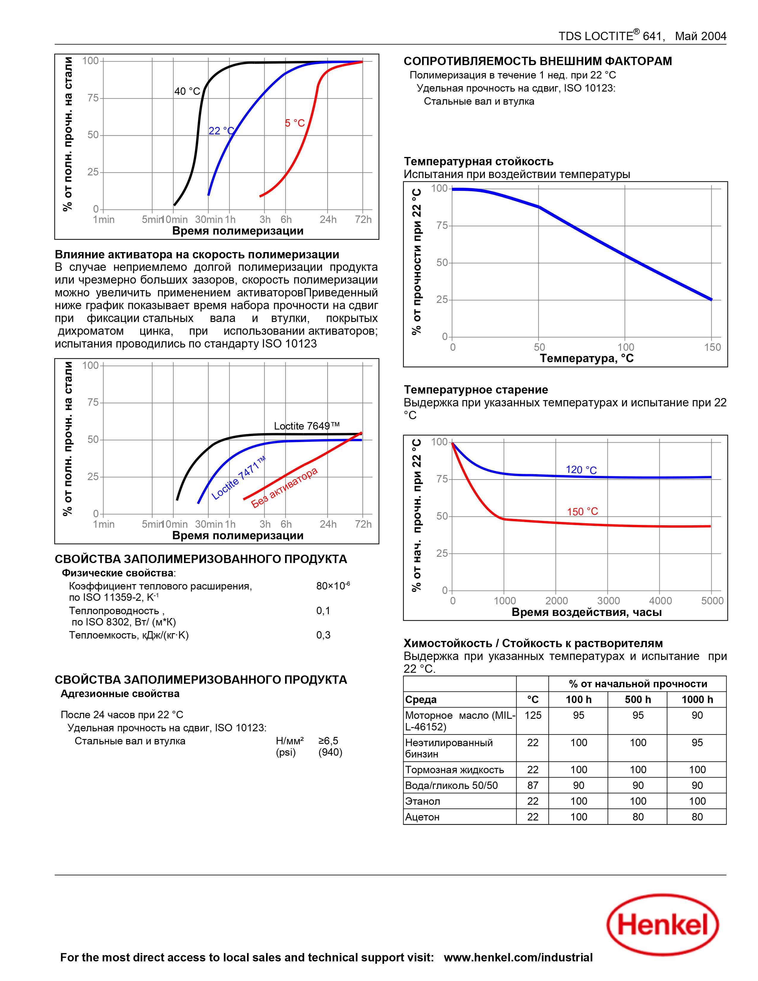 Фиксатор Loctite 641 предназначен для склеивания цилиндрических деталей, особенно в условиях, когда для обслуживания узла требуется его разборка. Продукт полимеризуется в условиях отсутствия воздуха в небольших зазорах между металлическими поверхностями и обеспечивает фиксацию и герметизацию соединений, работающих в условиях высоких нагрузок и вибрации.