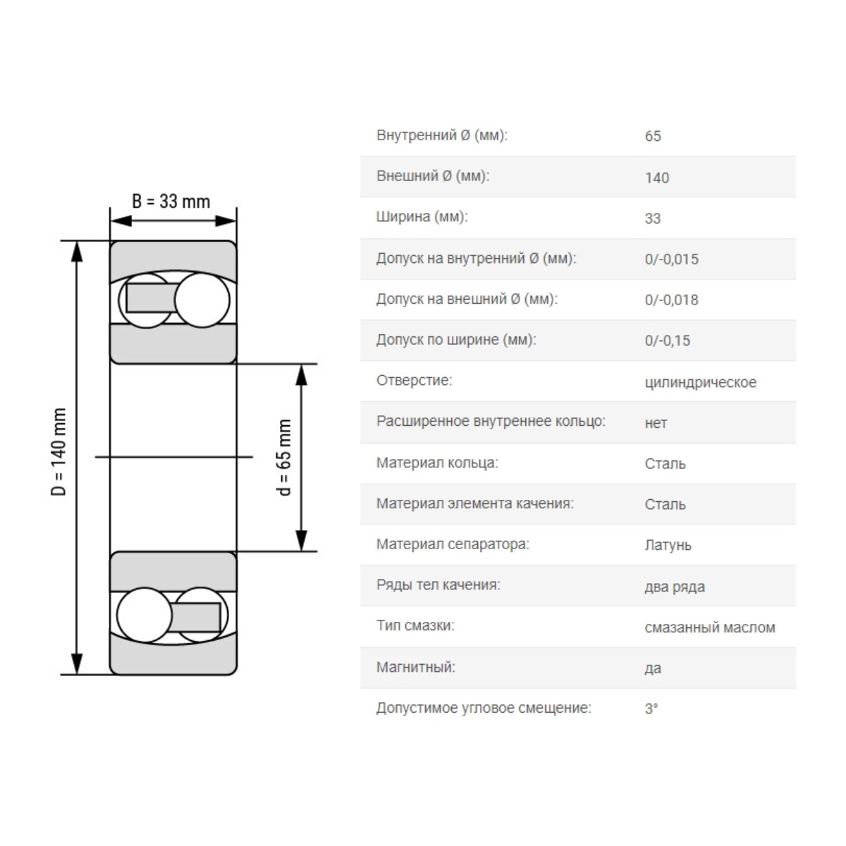 | Номинальная динамическая грузоподъёмность | C | 65 kN |