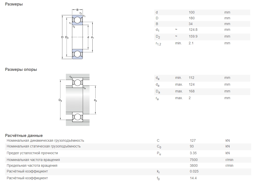 | Номинальная статическая грузоподъёмность | C0 | 93 kN |